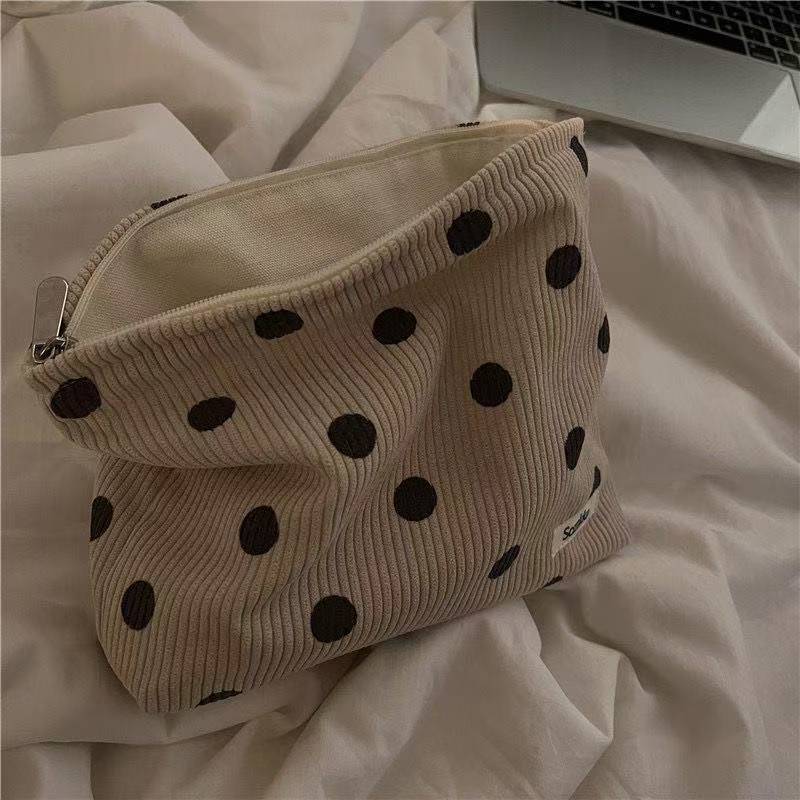 新款复古灯芯绒波点化妆包便携大容量ins风日系收纳整理编写洗漱