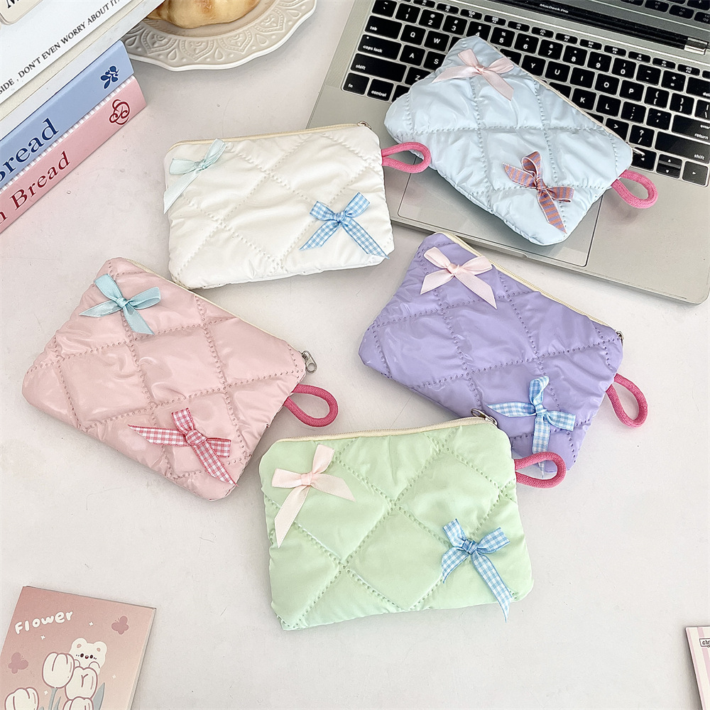 411293新作珠光亮面蝶結び携帯口紅化粧バッグ洗面収納小銭入れ