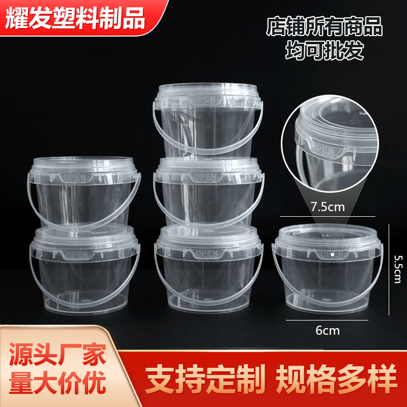 1-5L 食品グレードのポータブル透明プラスチックバケツおもちゃの密封されたバケツ氷粉末テイクアウト包装バケツのバッチメーカー