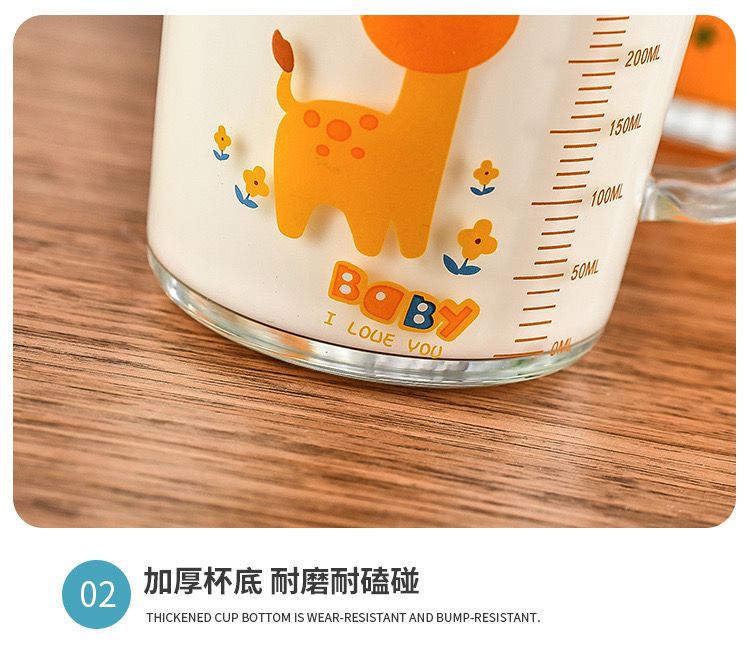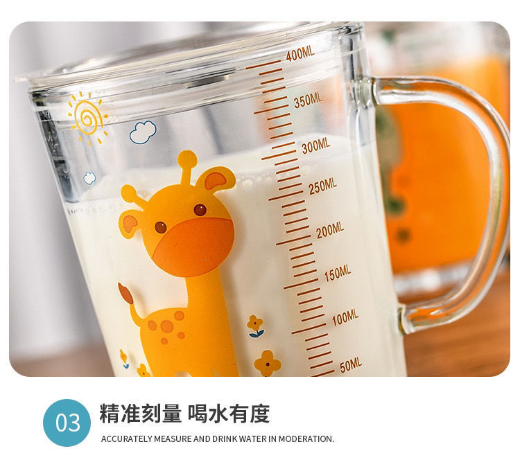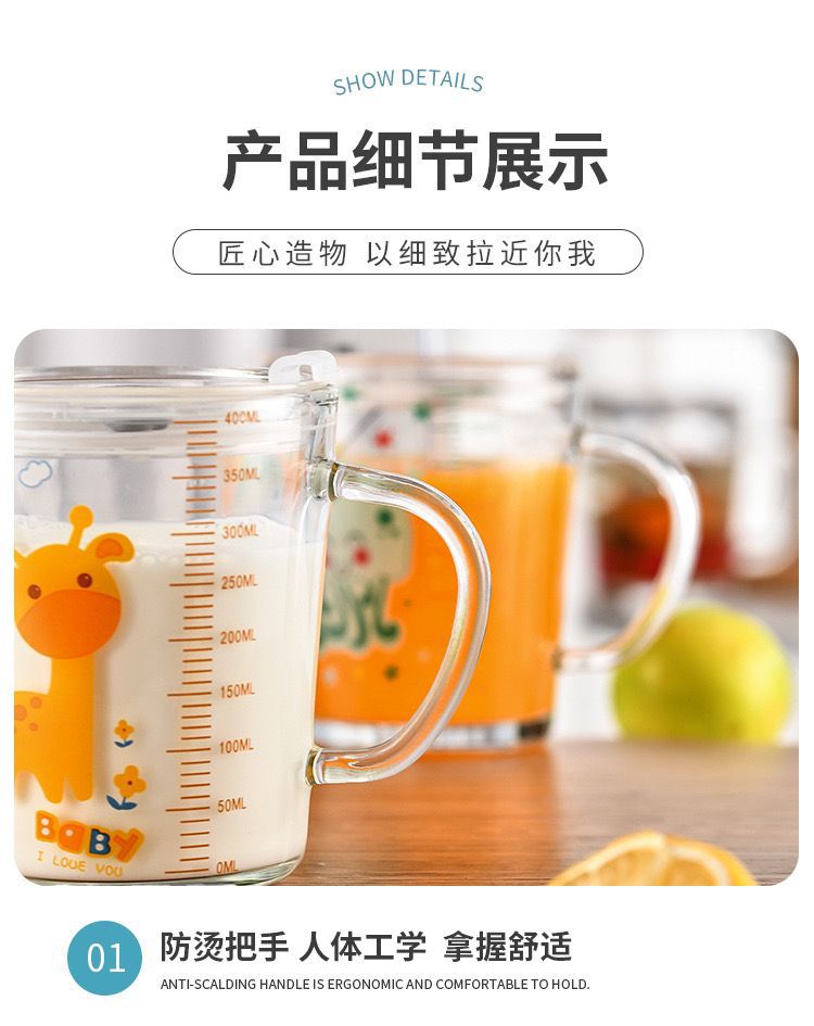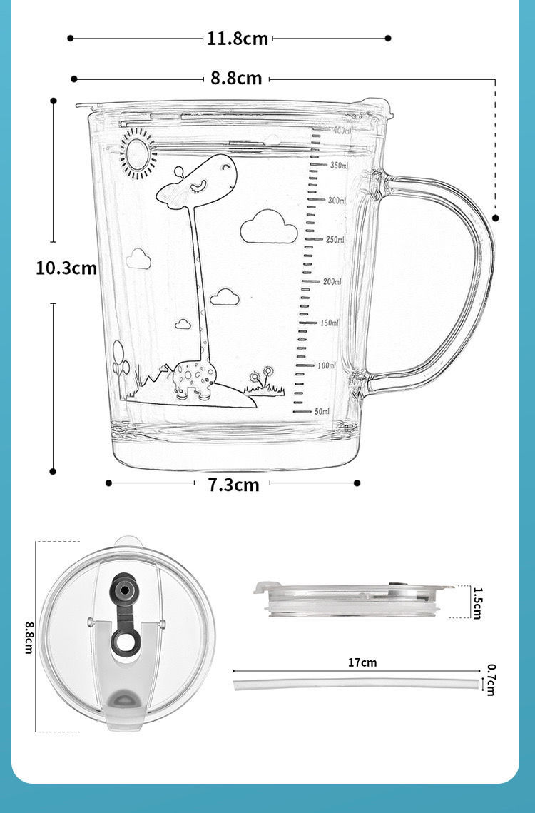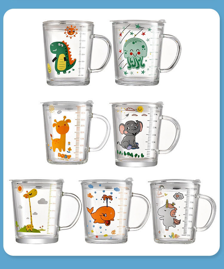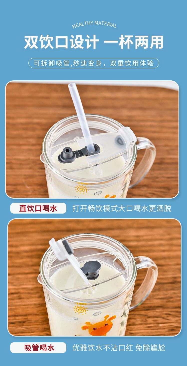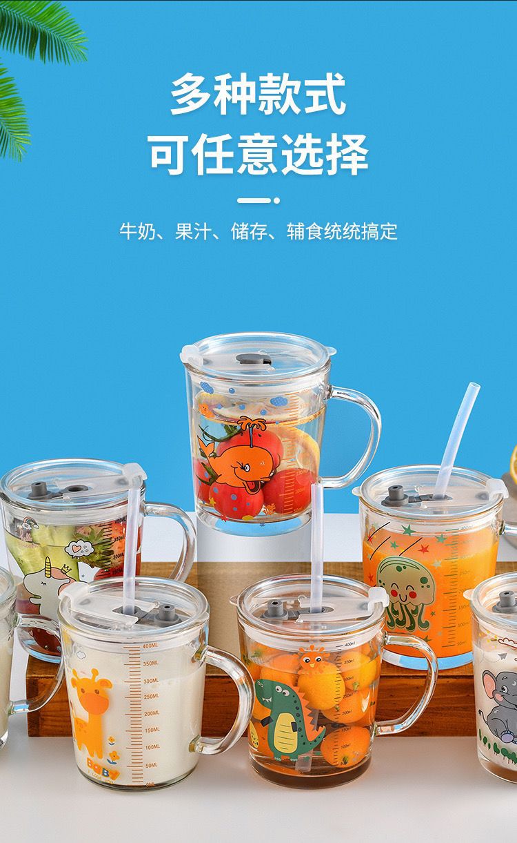 ミルクカップ子供スケールカップ朝食デザートカップ漫画高颜値シール漏れ防止ストロー付きガラスカップ