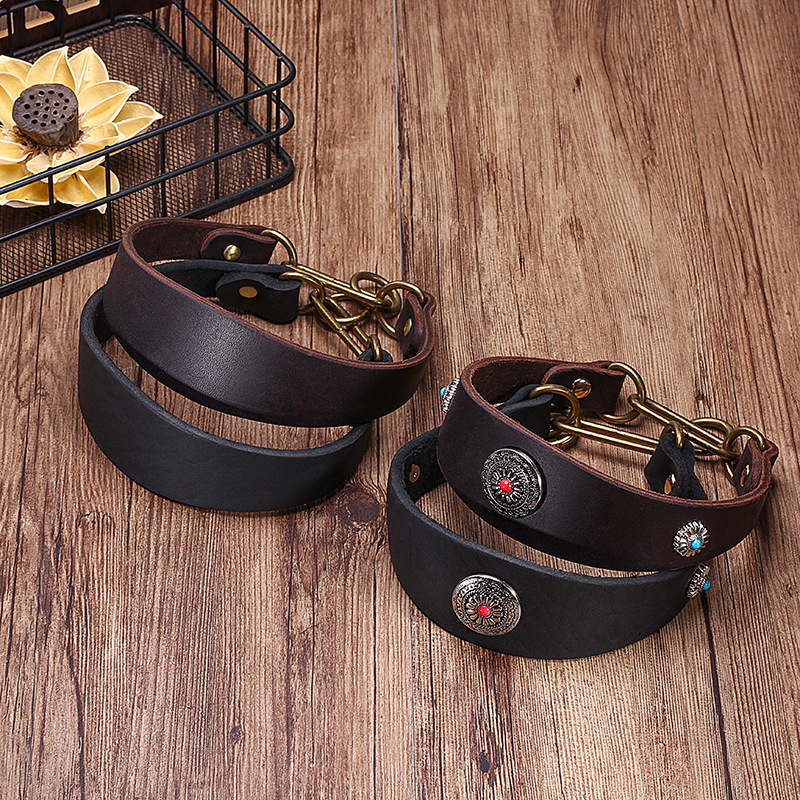 中型大型犬犬犬牽引ひも金毛ラブラドール牛革首輪ドッグラン犬ひも犬チェーン用品