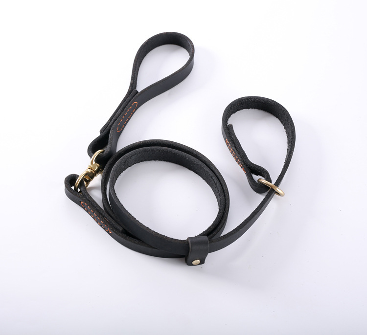 卸売ヘッド層牛革牽引ロープpチェーン一体防爆冲犬チェーン徳牧馬犬訓練縫合線牛革ロープ