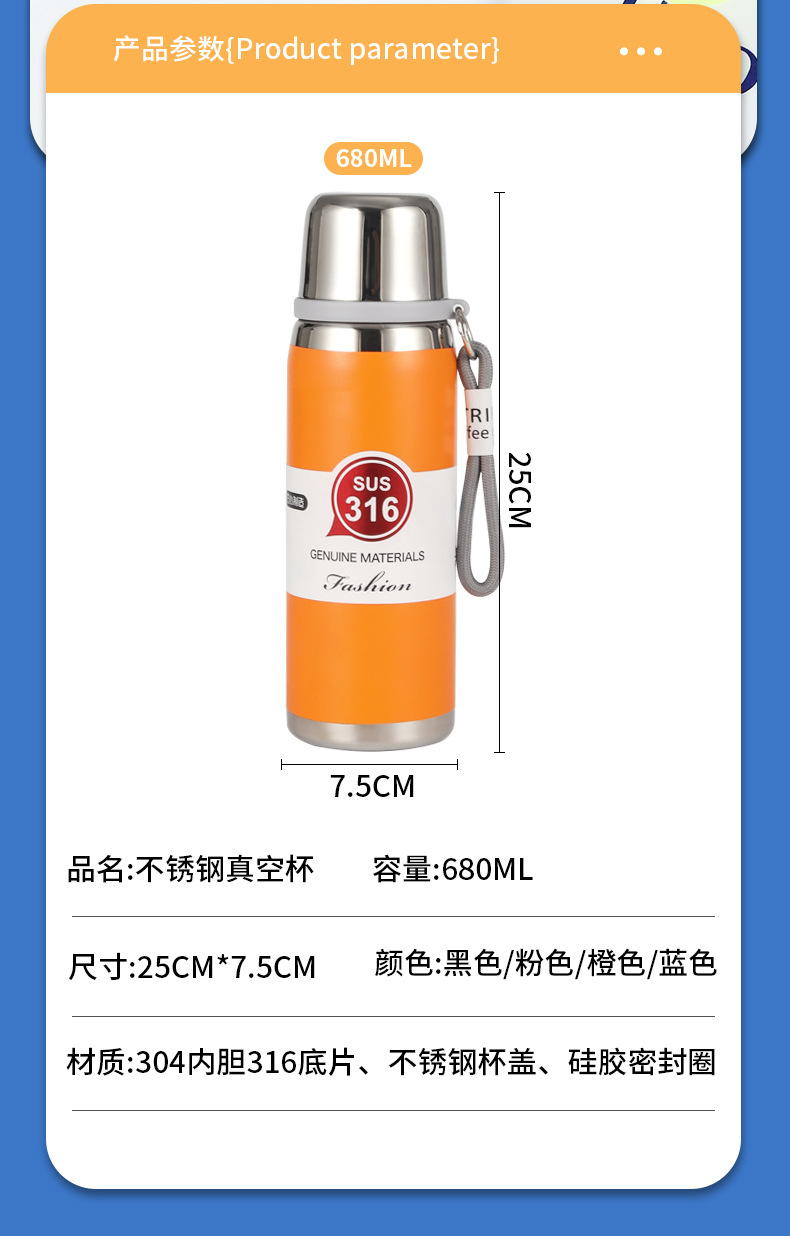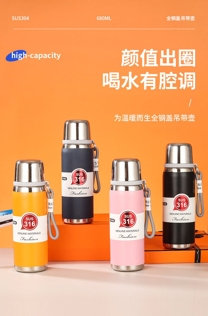 316ステンレス保温カップ屋外携帯大容量旅行車載ストラップ真空保温スポーツポットカスタム