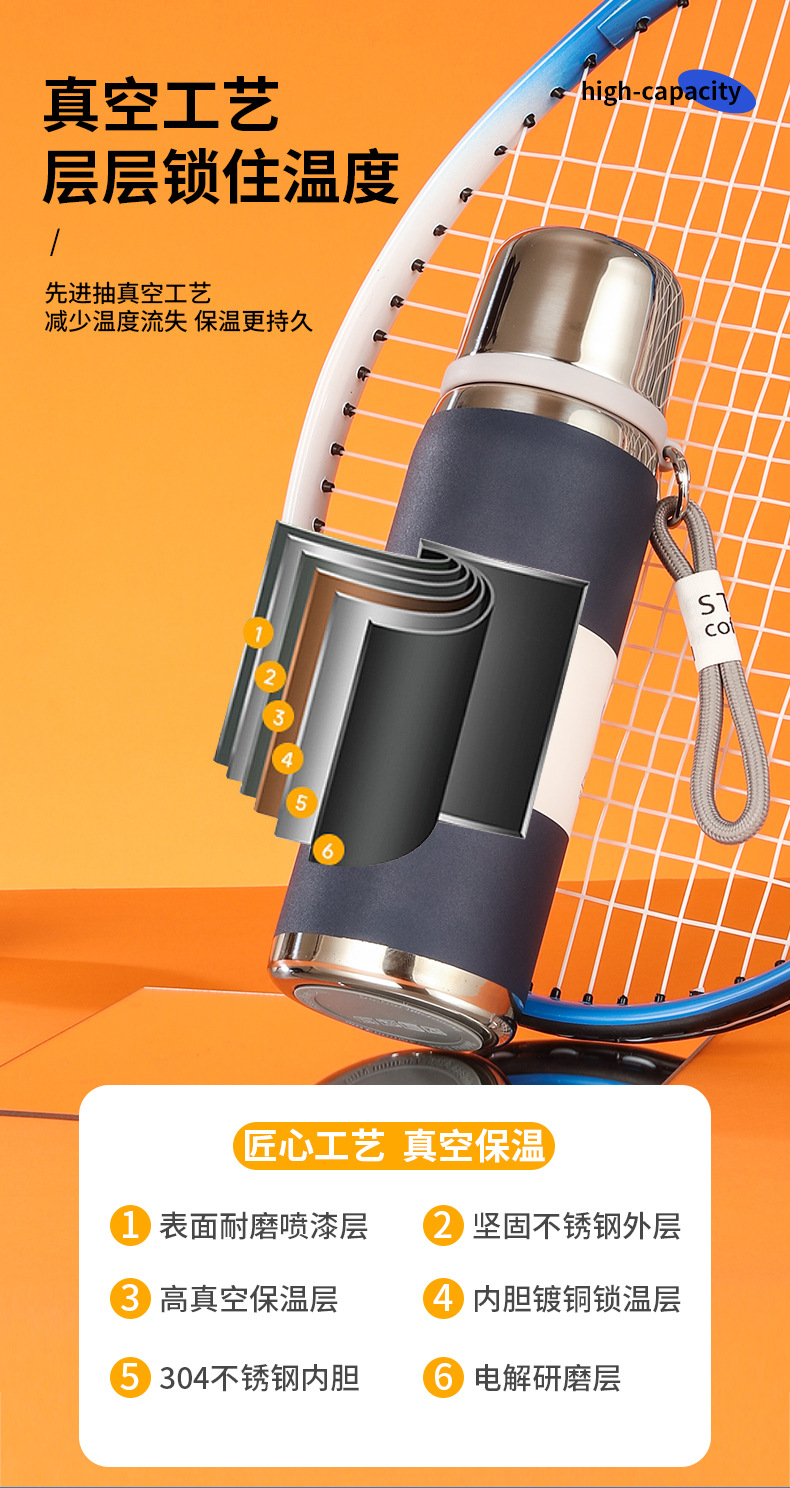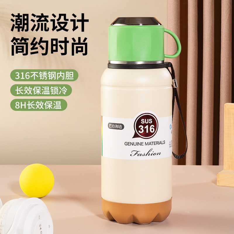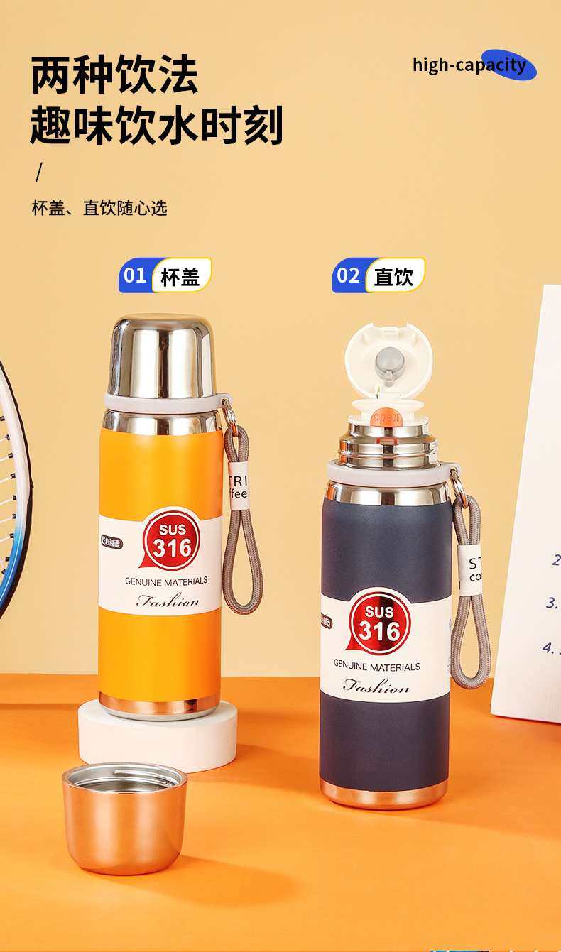 316ステンレス保温カップ携帯型ロープ付き旅行ポット厚さ大容量茶水分離運動水筒