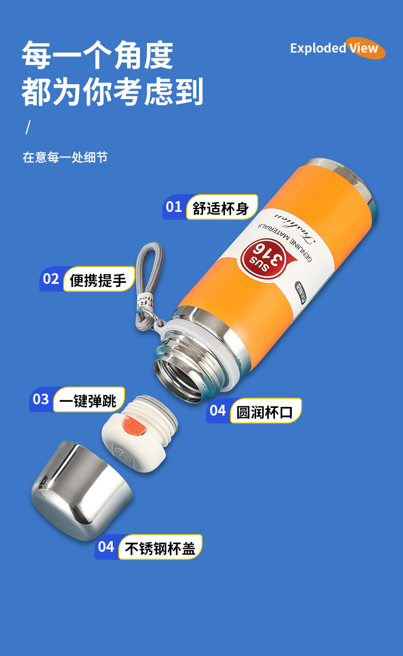 国境を越えた人気316ステンレス保温カップ大容量携帯スポーツ水筒屋外携帯旅行登山ポット