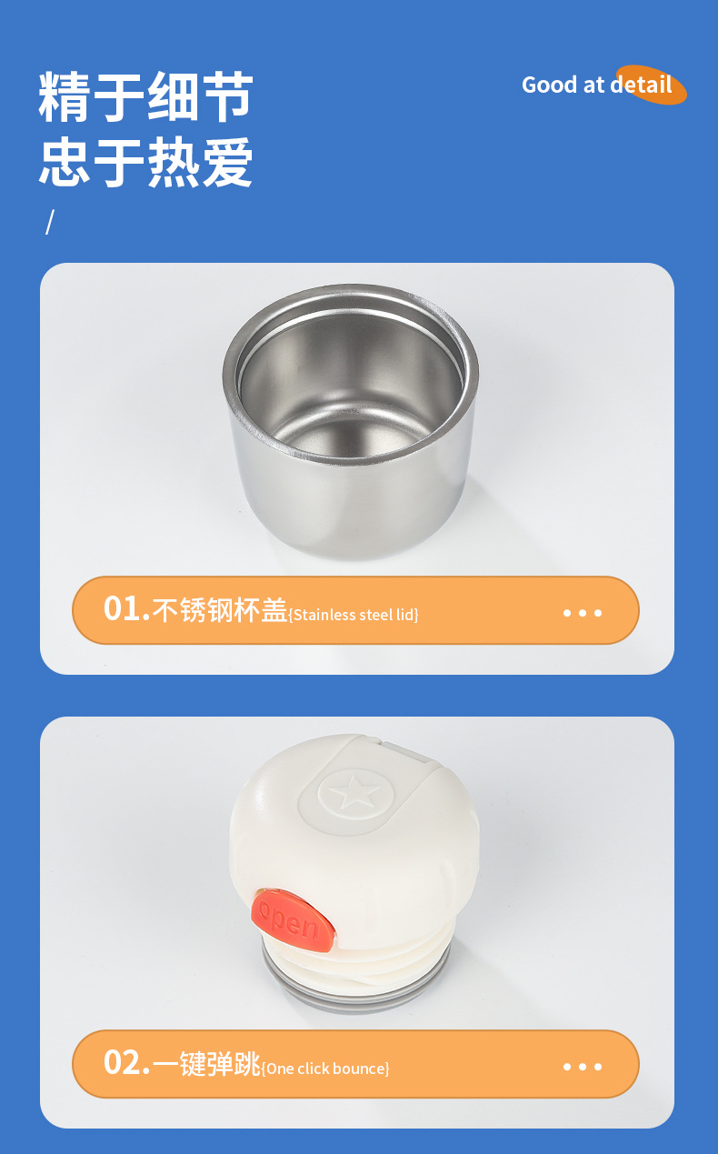 ダブルドリンク角糖316ステンレス大腹カップ大容量高颜値保温カップ児童学生ストロー保温カップ