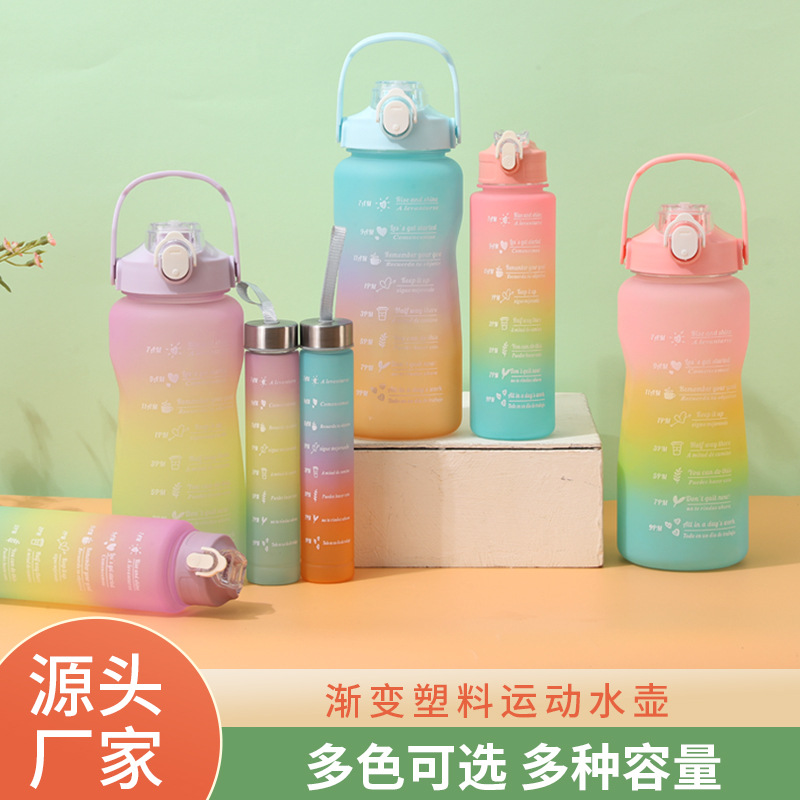 アマゾン ウォーターボトル 大容量 グラデーションカラー 3点セット プラスチックカップ スポーツウォーターボトル マットストロー 工場卸売