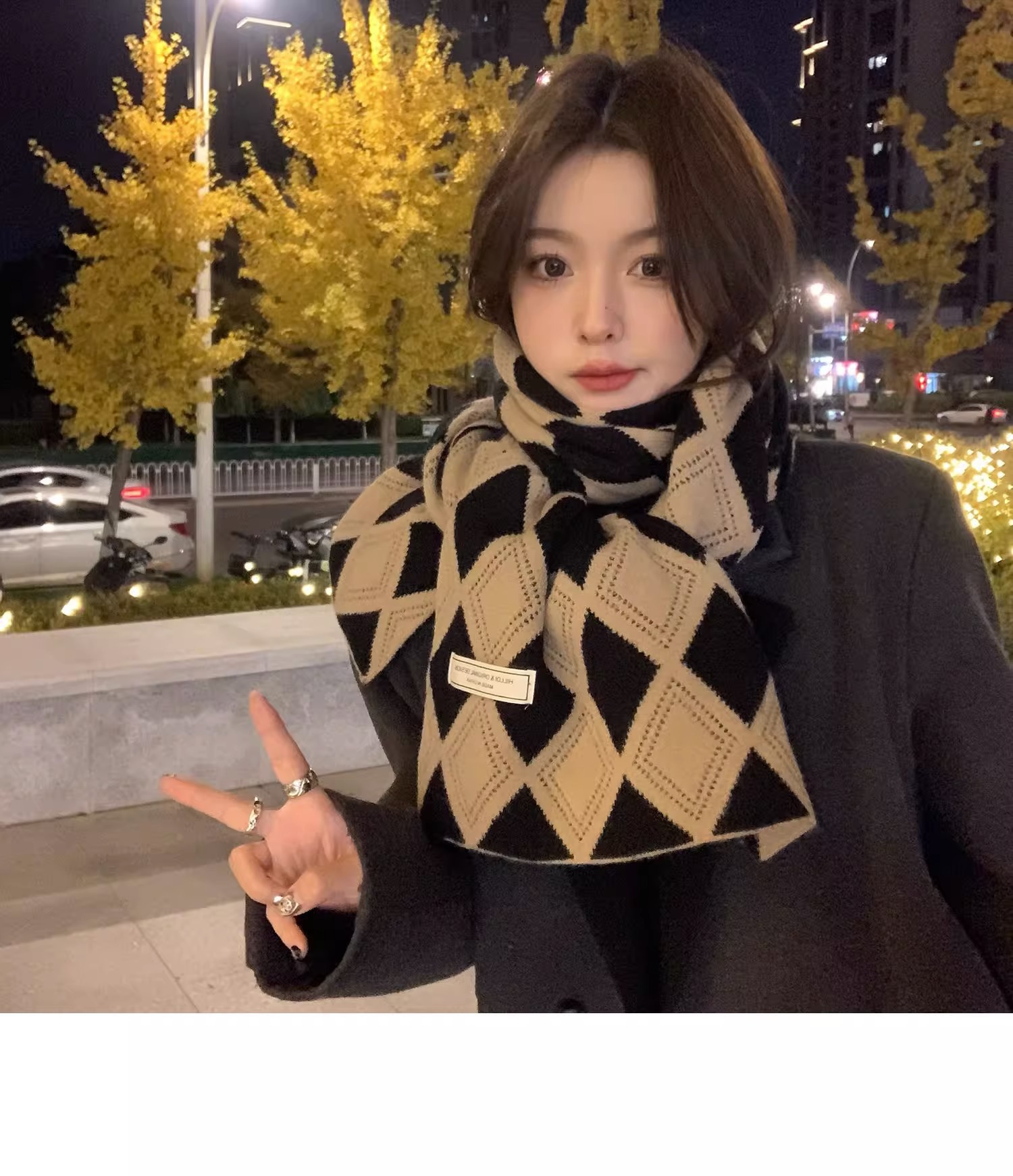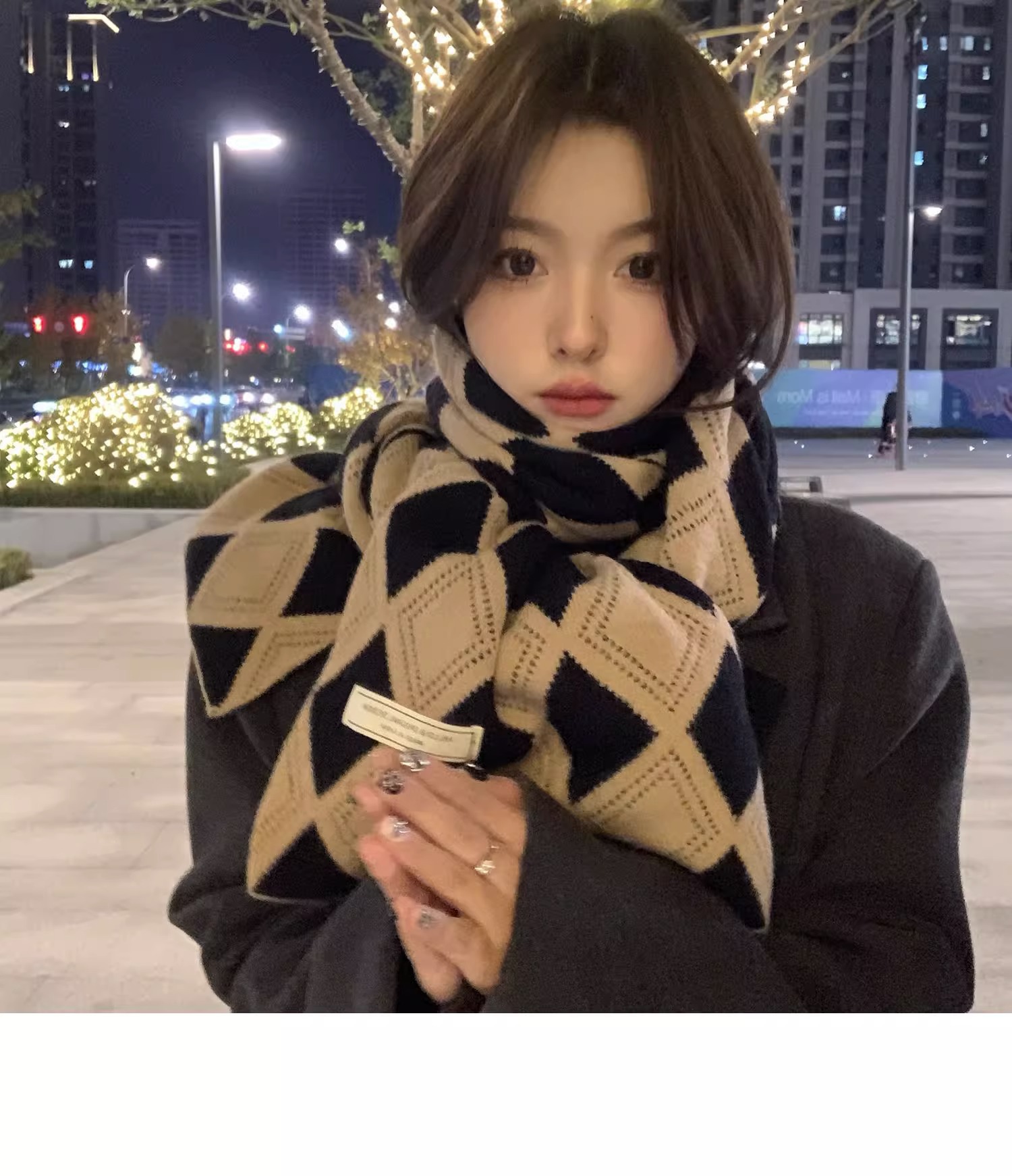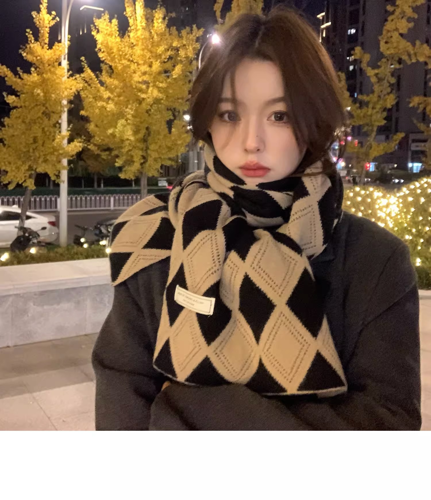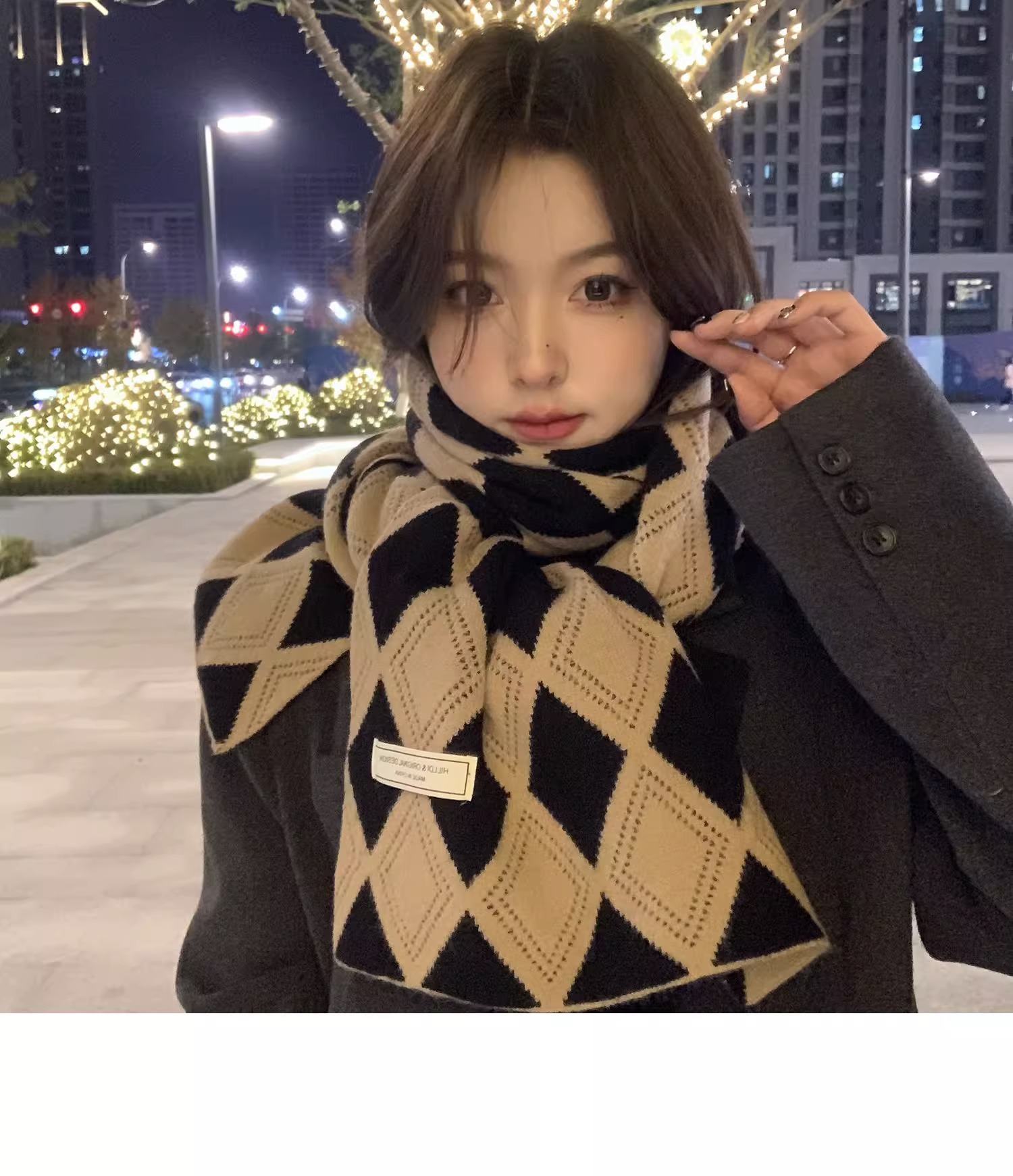 韓国系のひし形の格子のマフラーの女性は冬に保温を厚くして首を保護します。