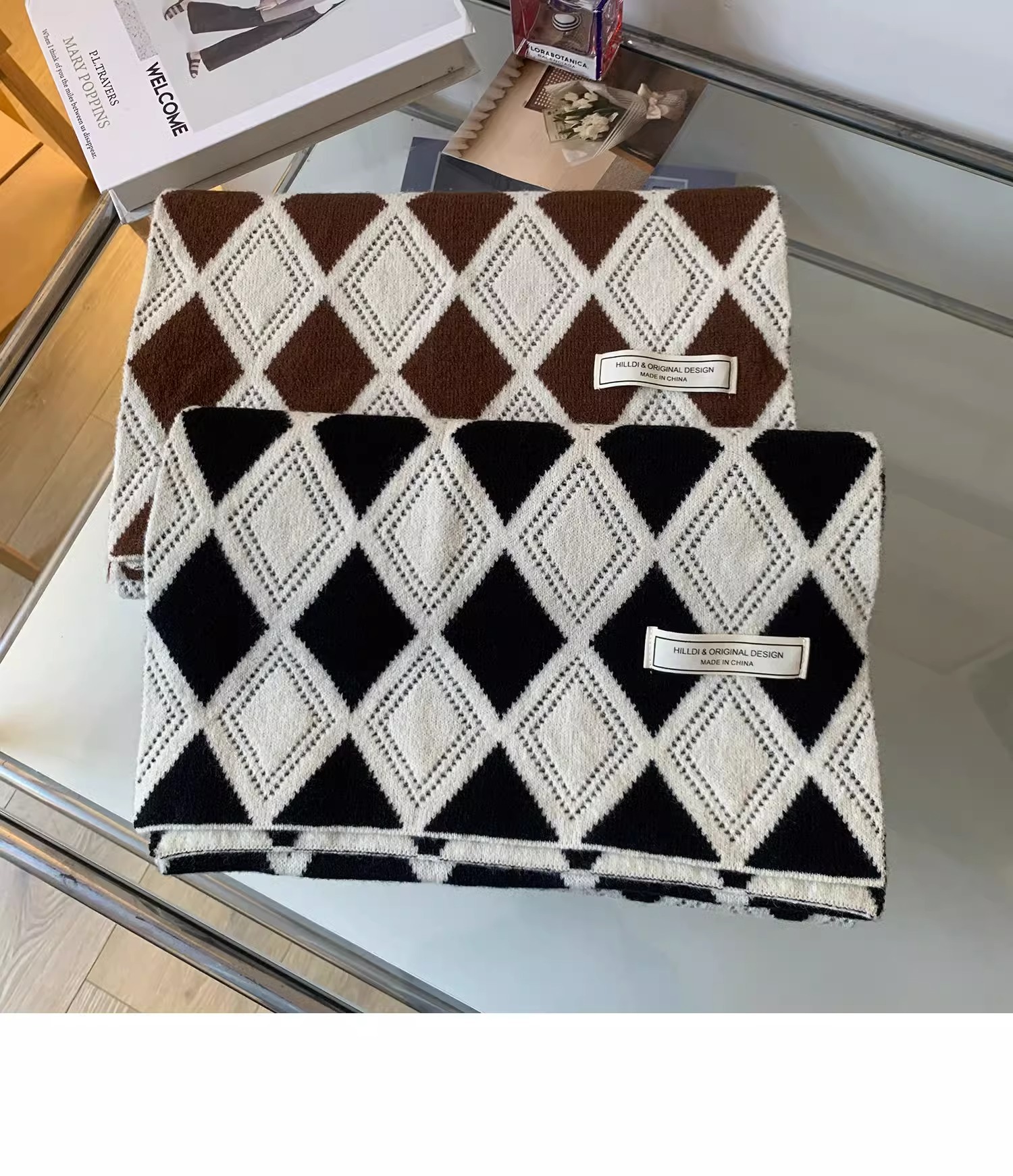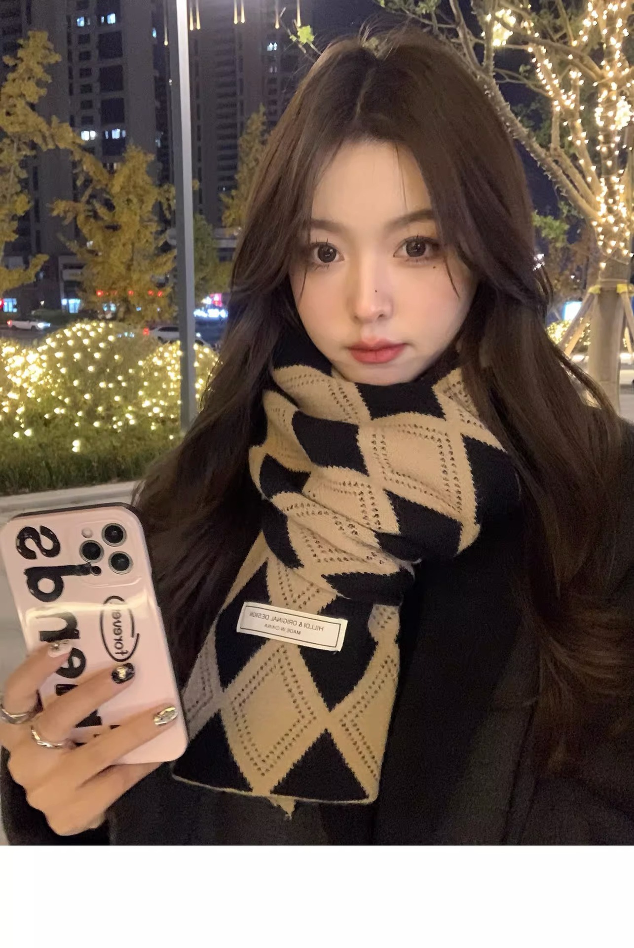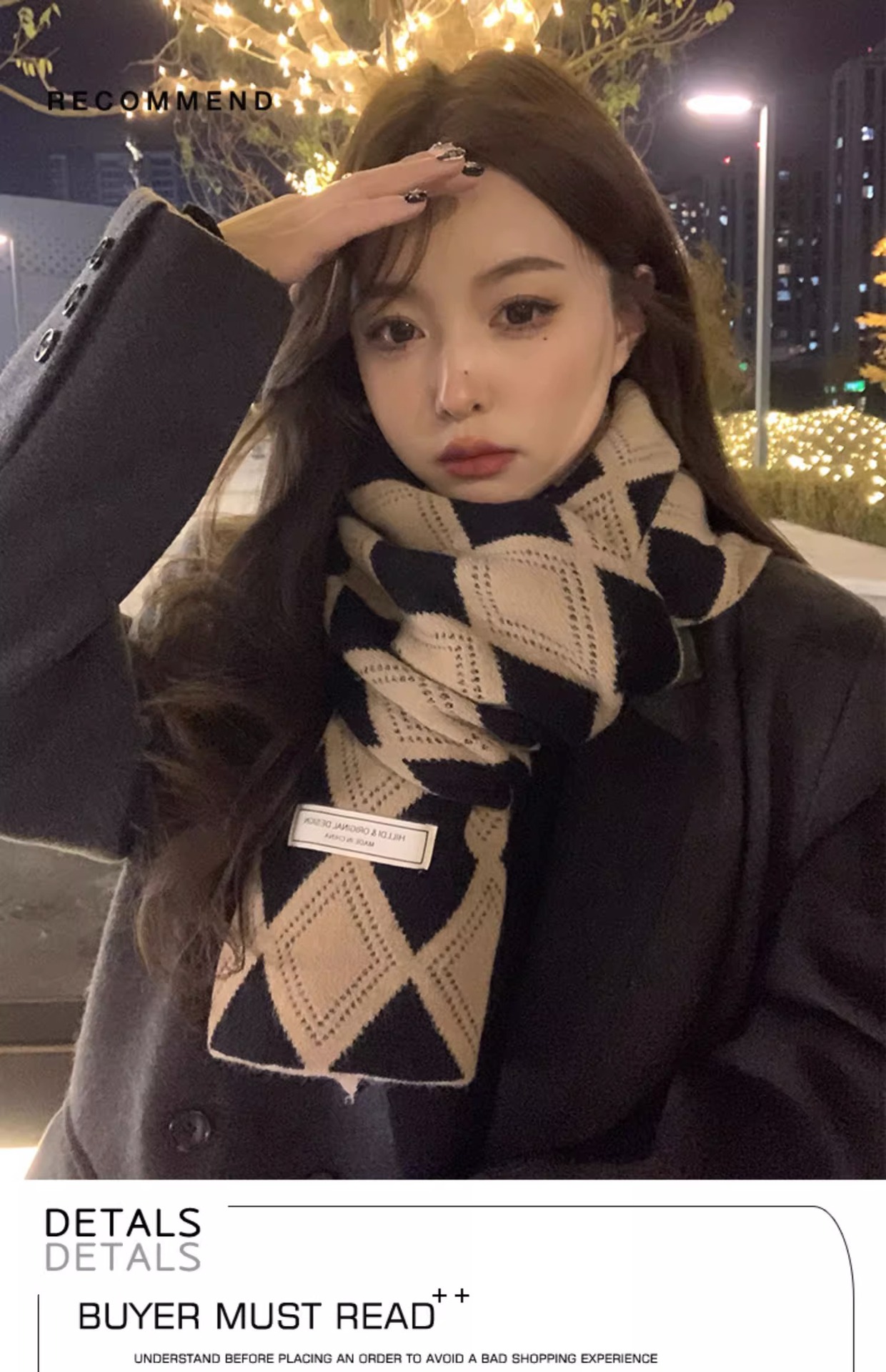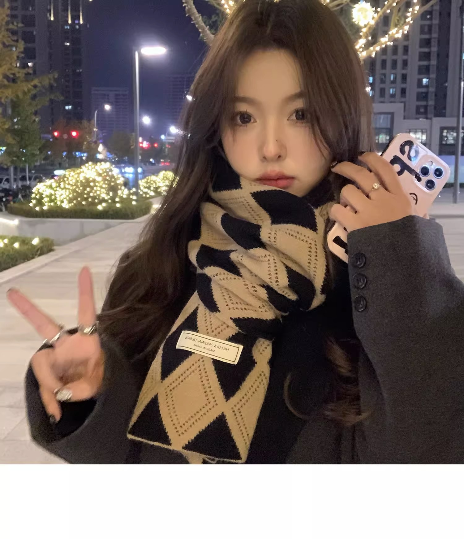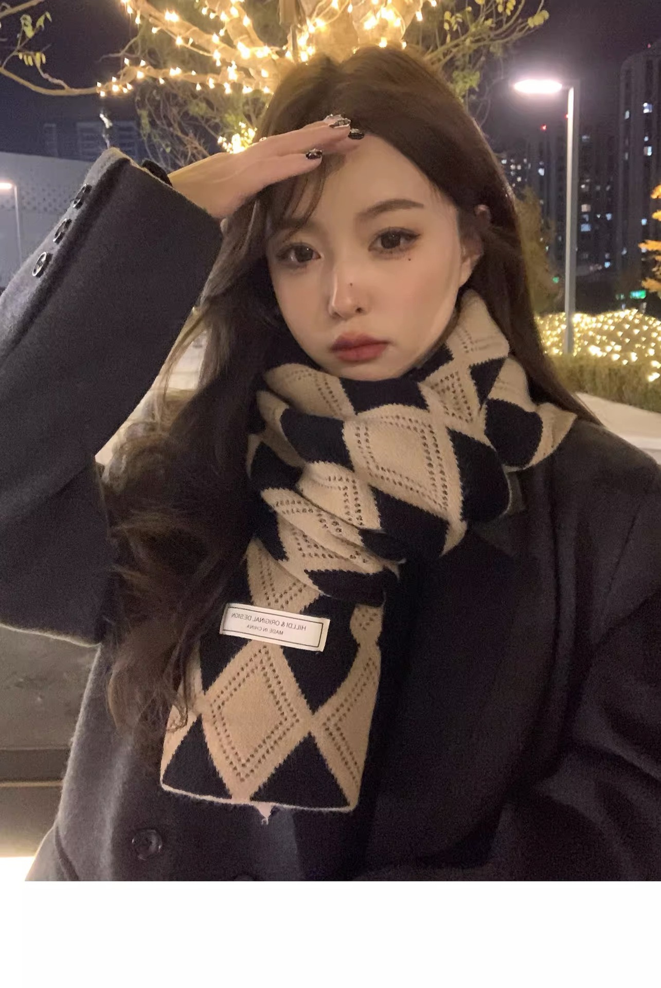 韓国系のひし形の格子のマフラーの女性は冬に保温を厚くして首を保護します。