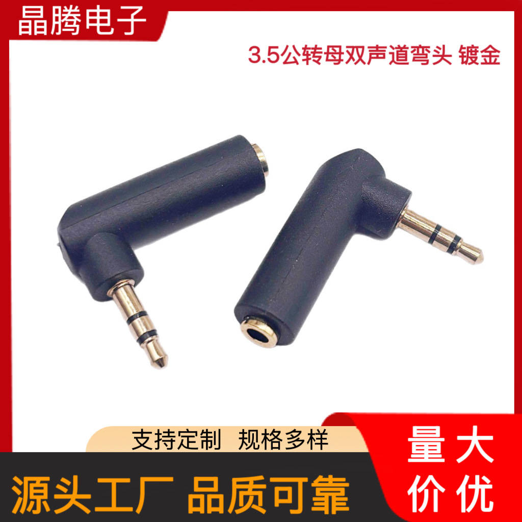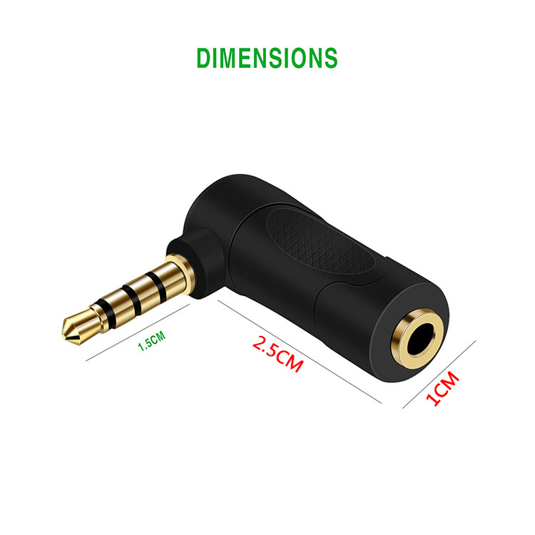 金メッキ3.5mm四級4節公転母アダプタイヤホンプラグ直角90度エルボL型変換ヘッド