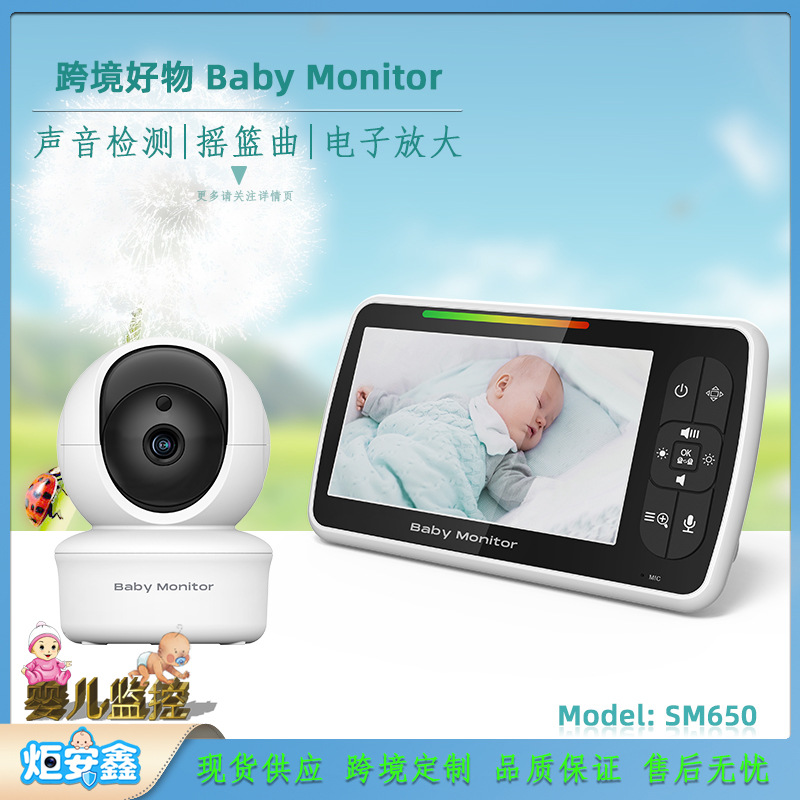 跨境婴儿监护器5寸无线宝宝监护仪家用摇头温度检测双向语音