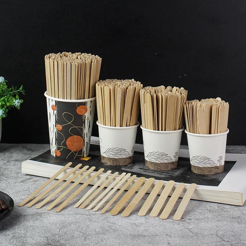 使い捨て白樺材木製コーヒースティック、ミキシングスティック、個別包装、工場直販、手動
