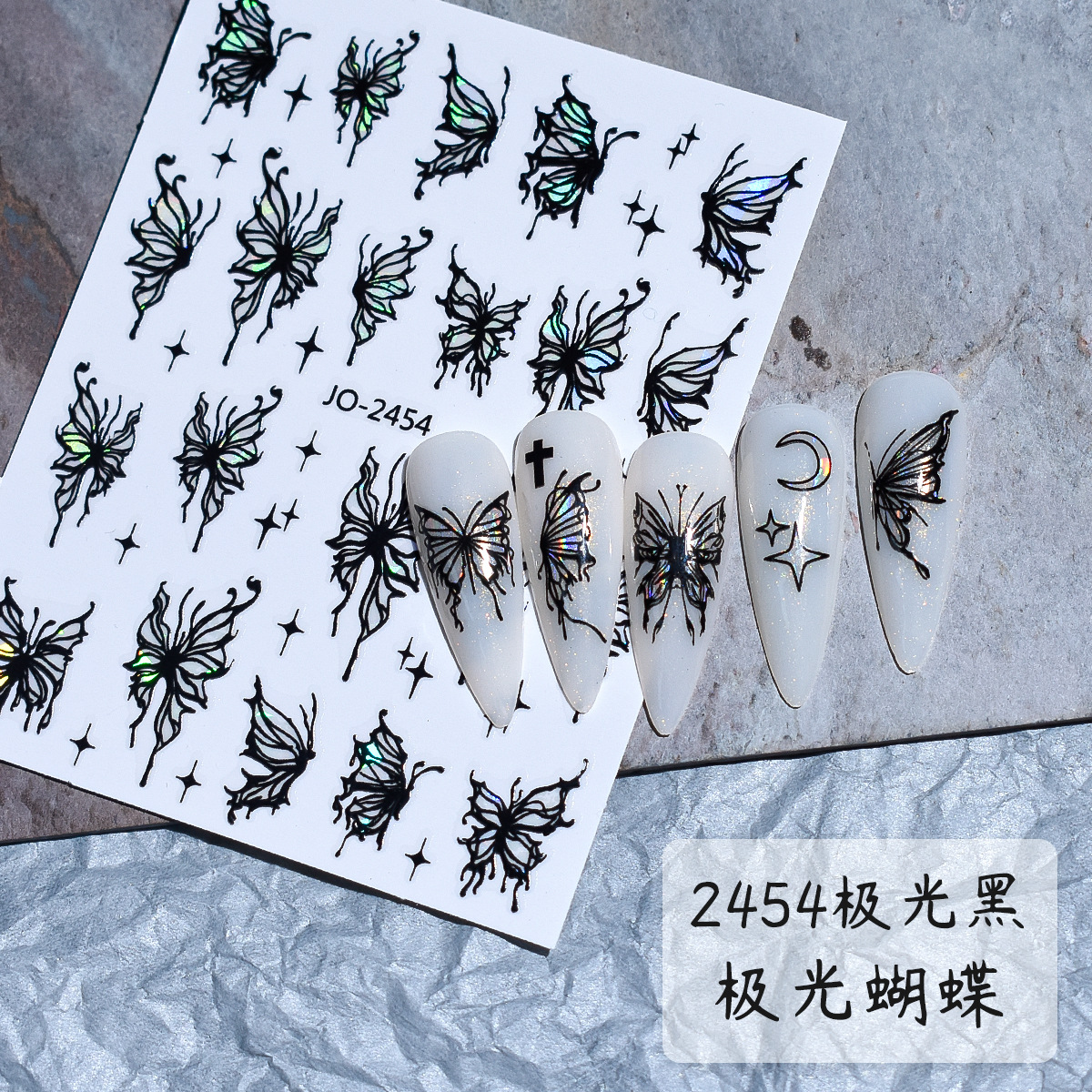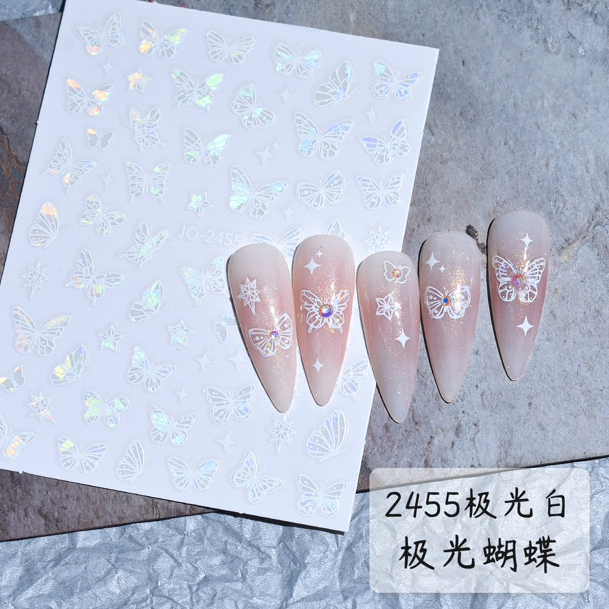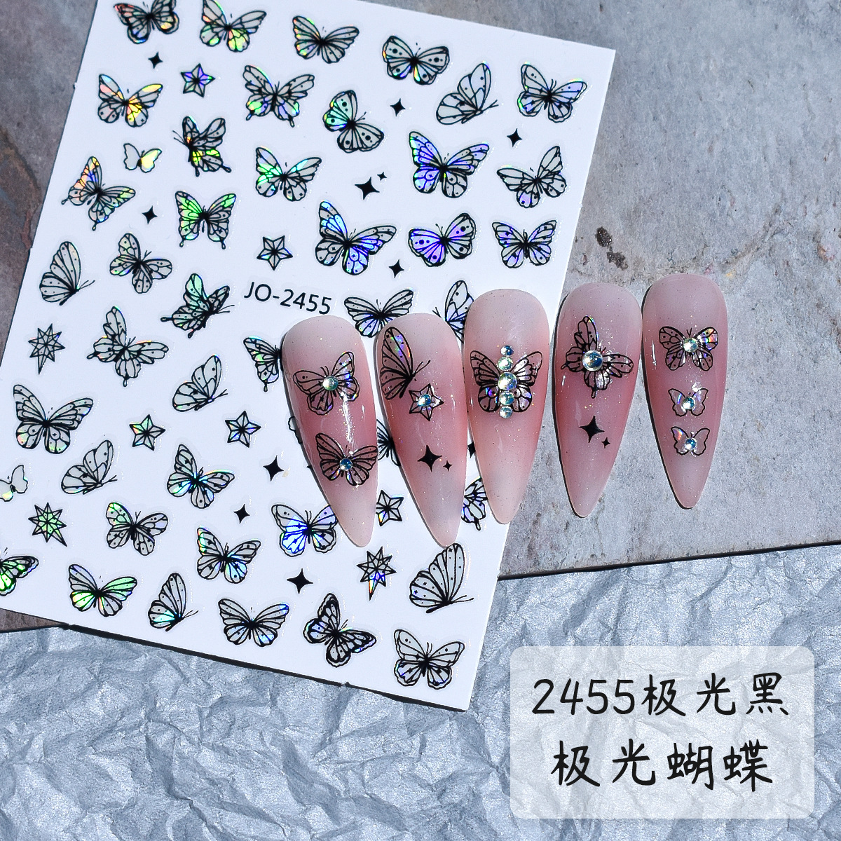 新品ネイルステッカーネイルアートレーザー蝶ステッカーins风オーロラ蝶爪ステッカー花柄テープテープ非常に薄い