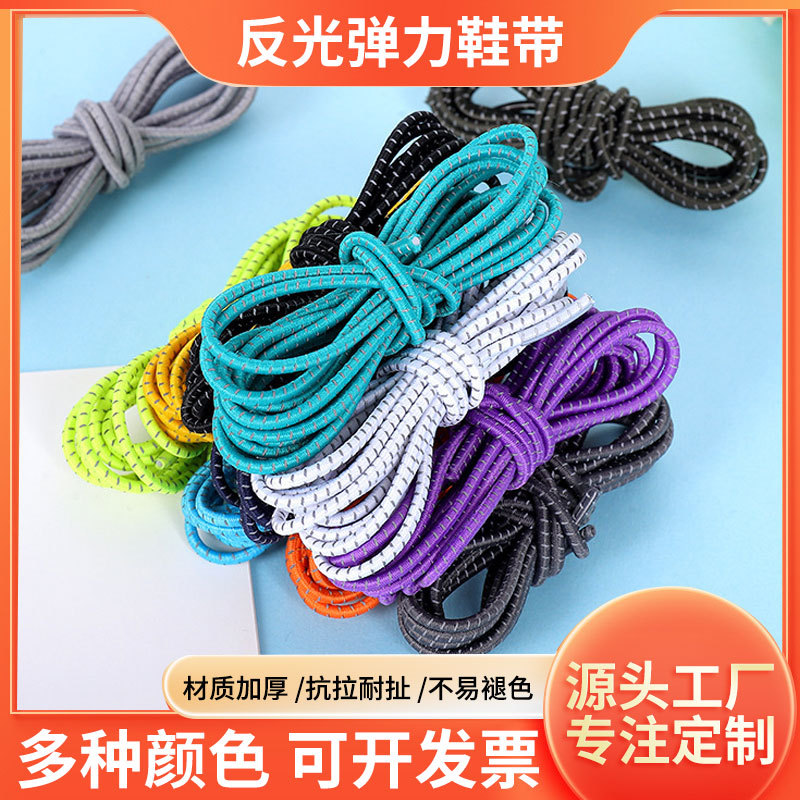 開時盛反射弾力丸靴紐は縛らないでください。子供のゴム弾力白黒カラー靴紐メーカーの卸売りです。