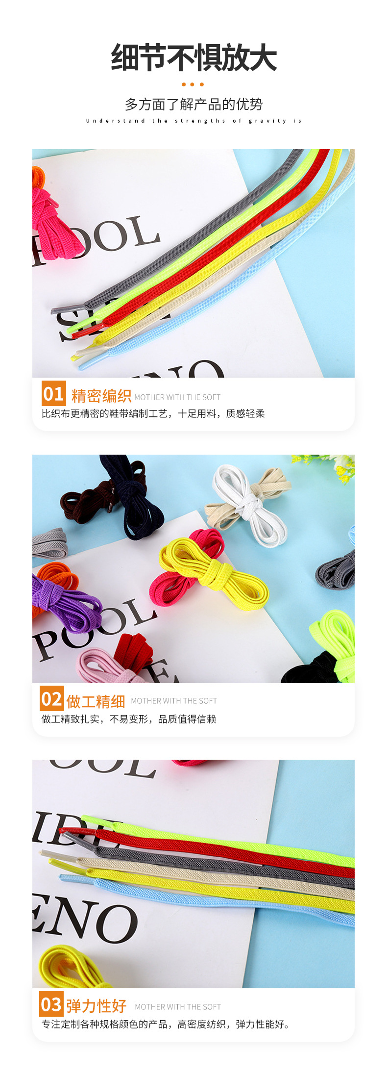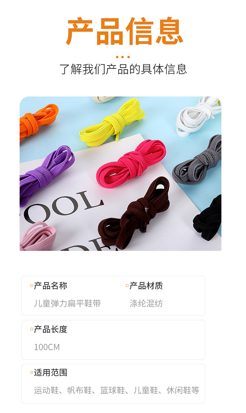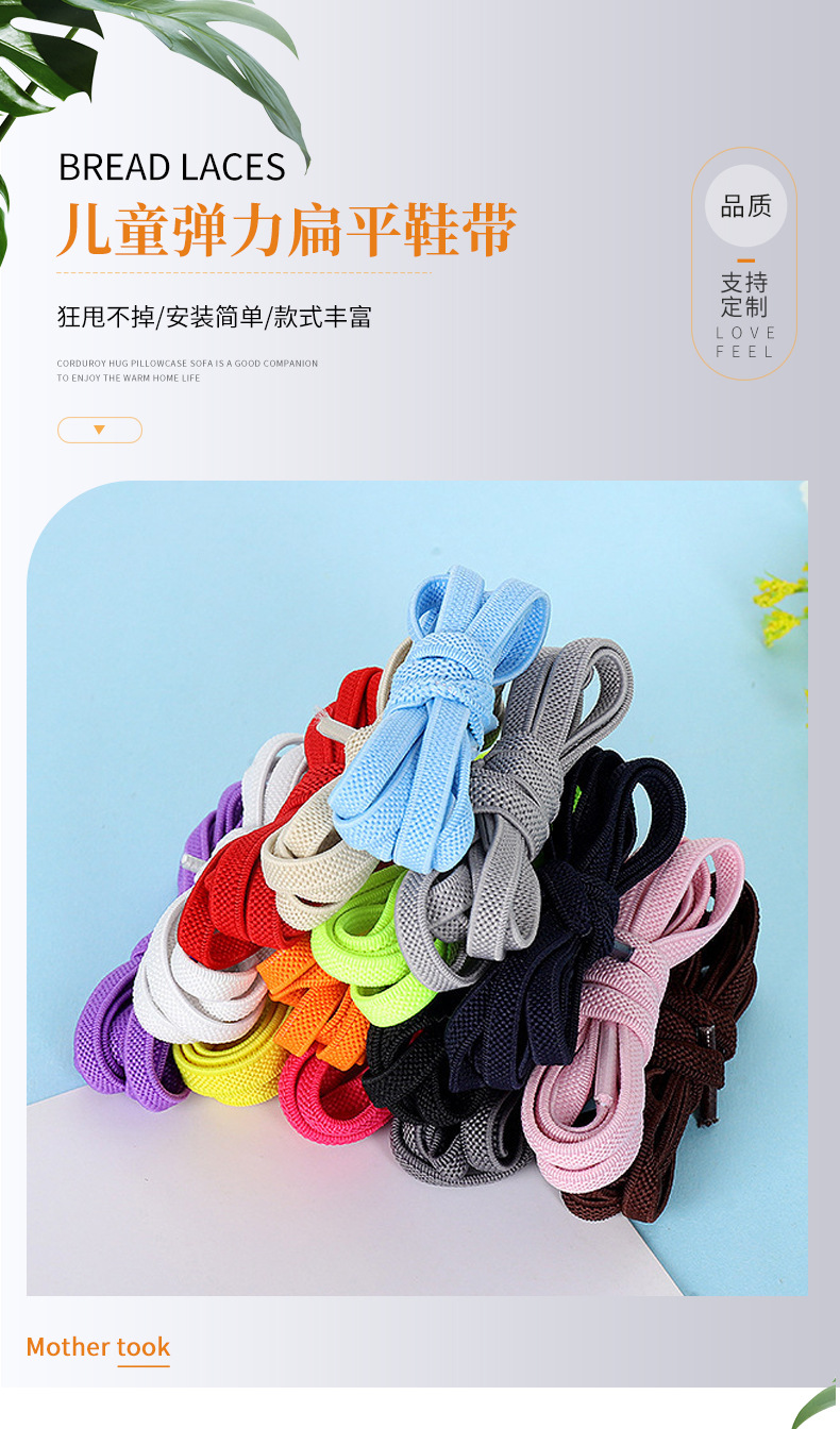 子供用平型伸縮靴紐 スポーツシューズ キャンバスシューズ ゴム製 工場卸売 カラフル伸縮調整