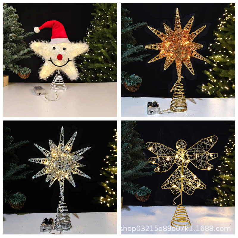 クロスボーダー供給新型クリスマスツリー爆発星装飾クリスマス装飾鉄芸樹頂星LED樹頂星
