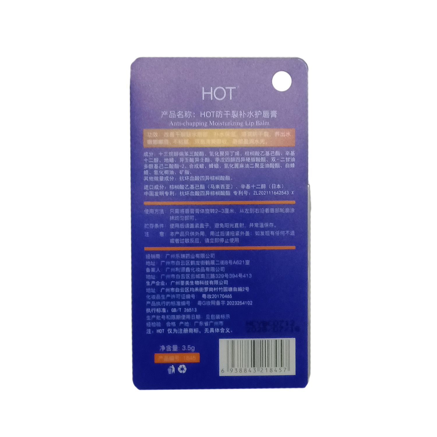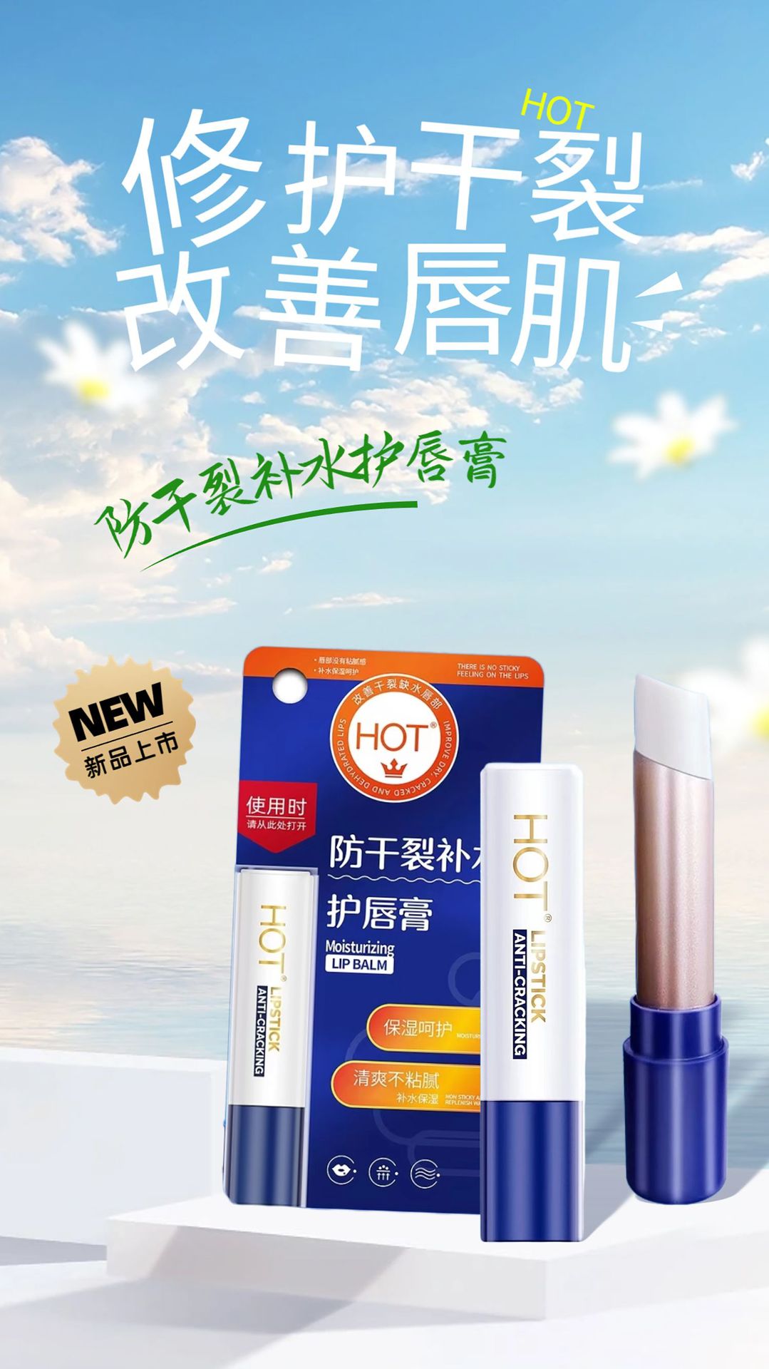 Hot乾燥防止水分補給リップクリーム2024秋冬金水分補給保湿潤い潤い爽やか