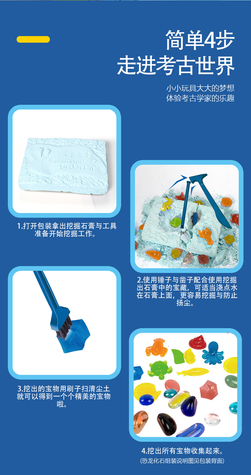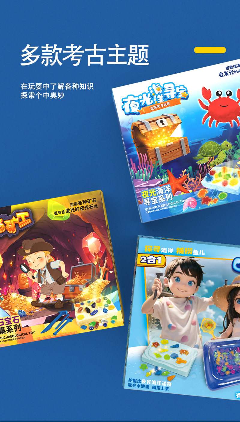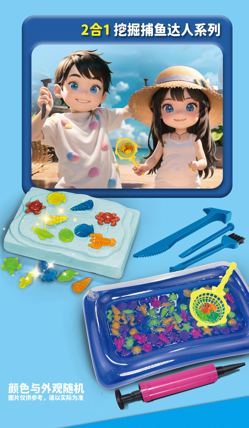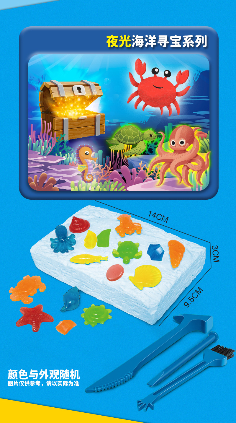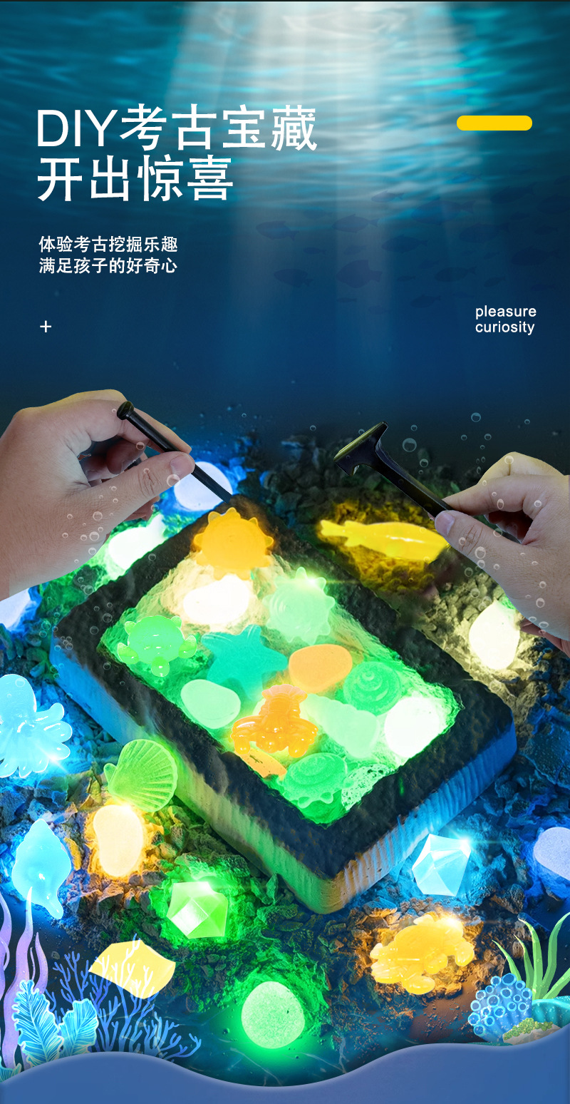 考古学発掘発光鉱宝石子供手作りdiy宝探し男の子女の子魚すくいブラインドボックス玩具卸売り