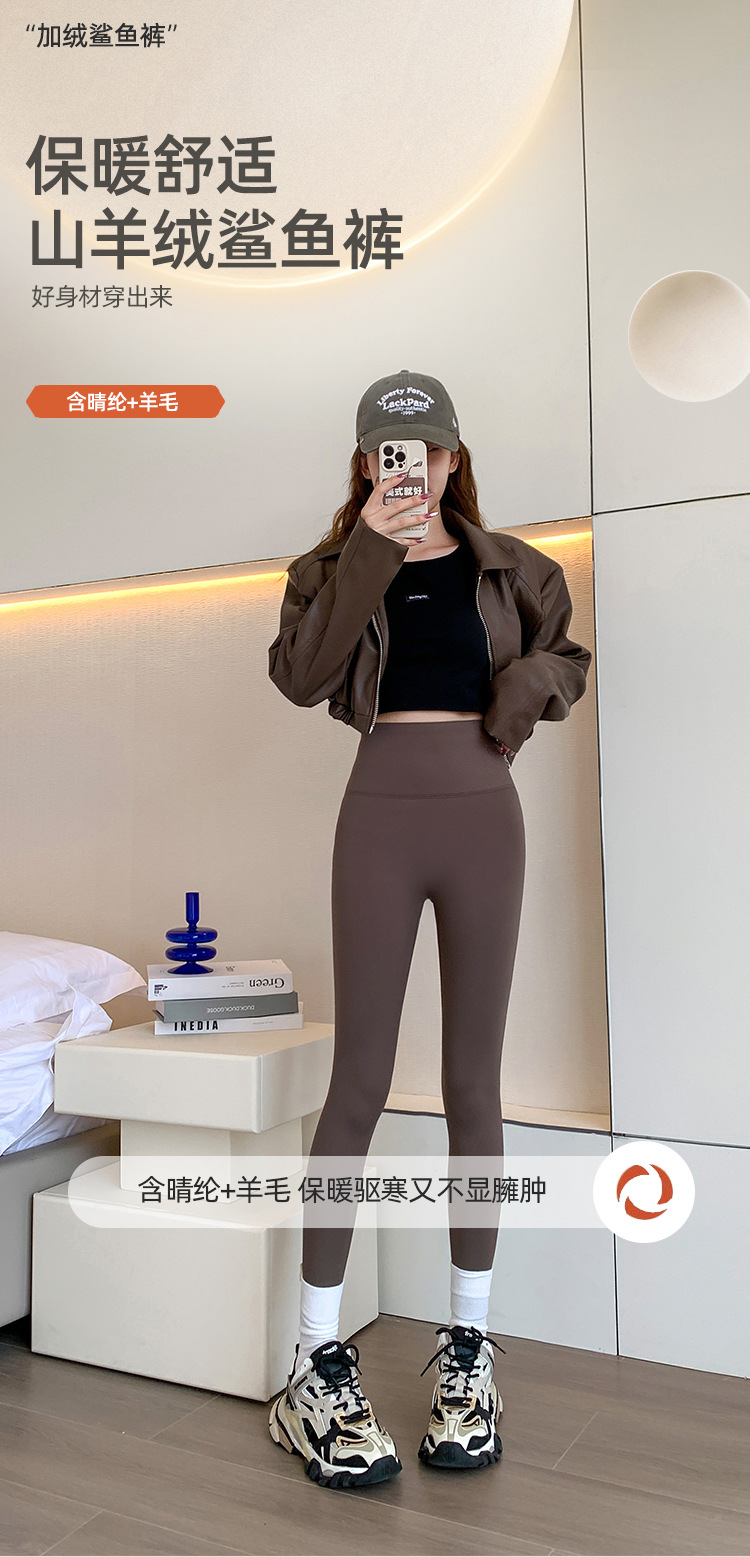 女性用シャークパンツ、秋冬スタイル、冬用ベルベット、2025年新作、厚みのある腹部引き締めヒップアップタイトヨガレギンス