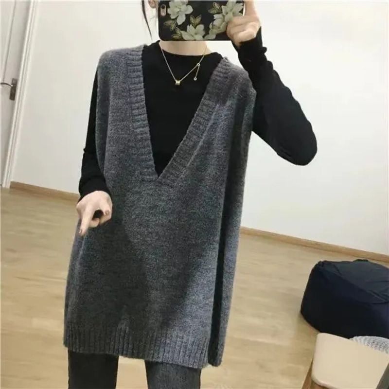 韩版复古气质V领纯色坎肩毛衣背心春秋慵懒宽松显瘦针织马甲外搭