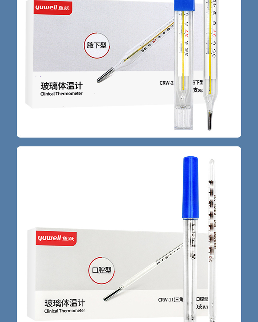 魚躍ガラス体温計口腔脇下家庭用水銀温度計大目盛り大数字成人児童乳児