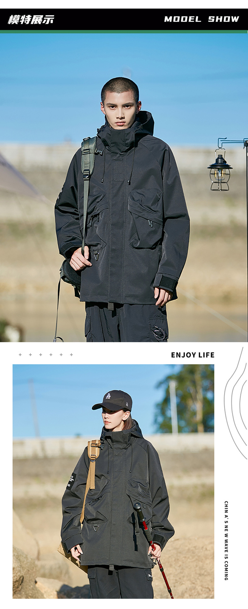 春秋冬の新型機能風カップルの屋外突撃服のスーツと帽子のコートの男女の同タイプのジャケットの登山服