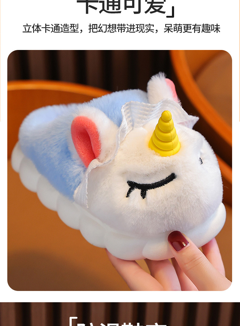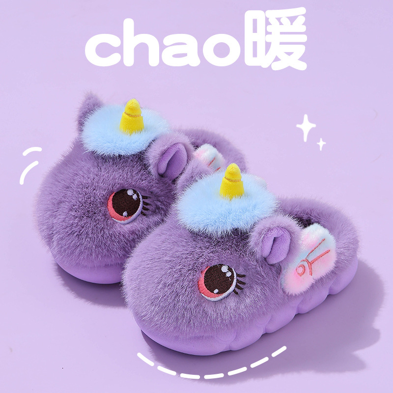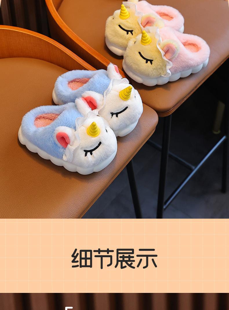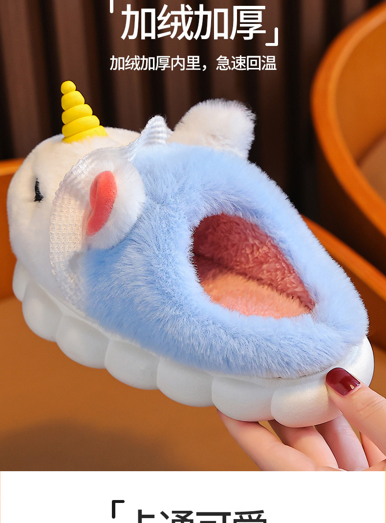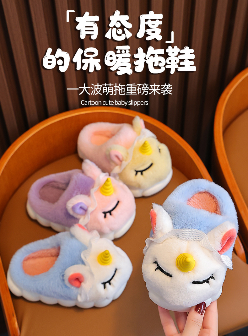 独角兽儿童棉拖鞋冬季女童加绒保暖毛毛居家中小童宝宝室内毛拖鞋