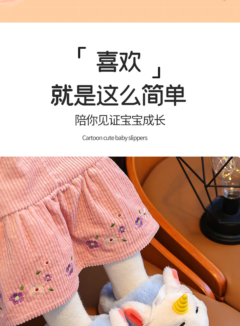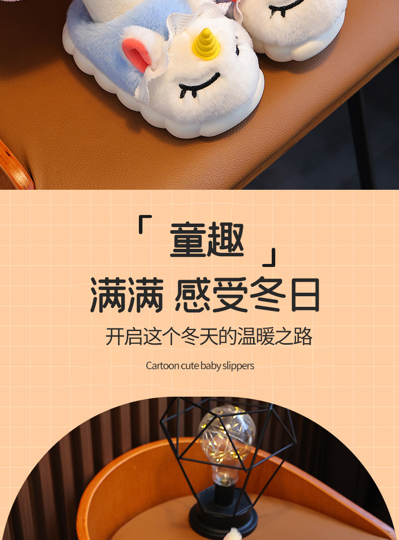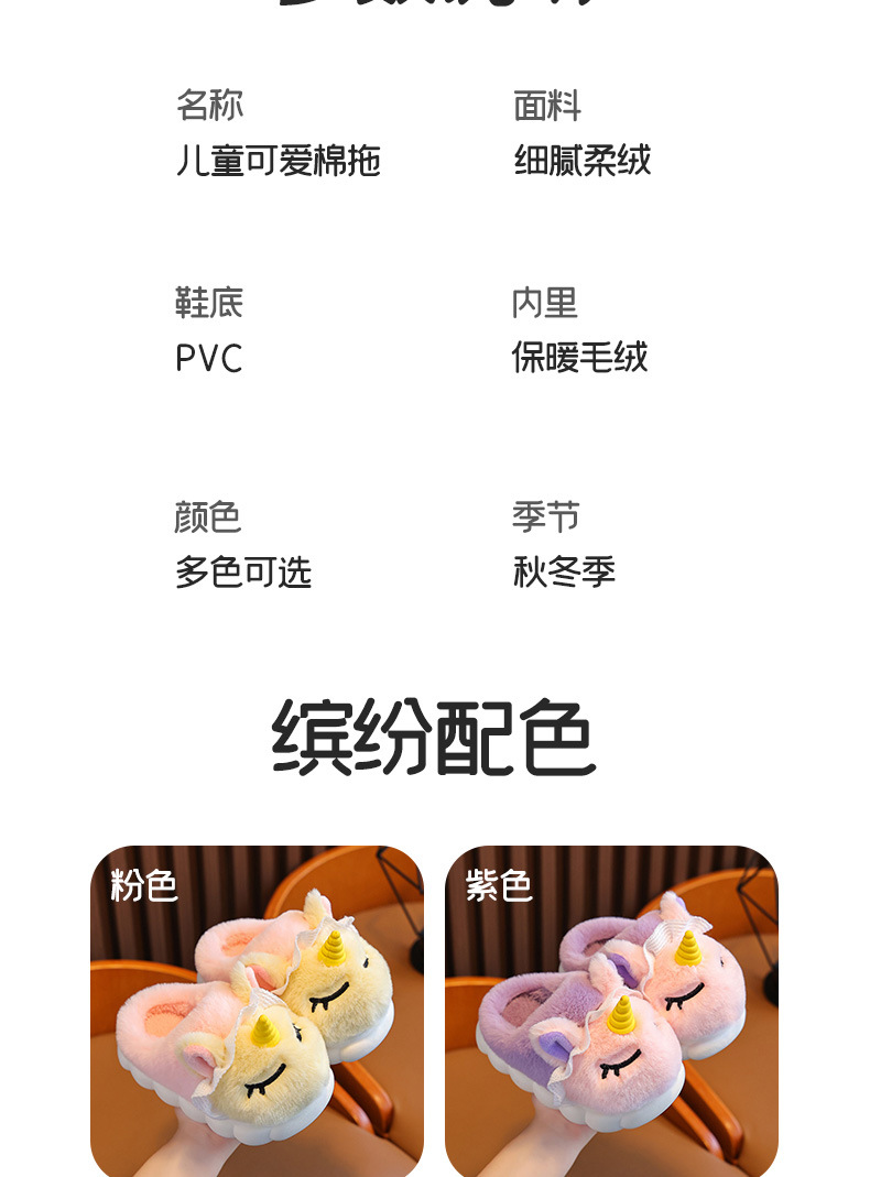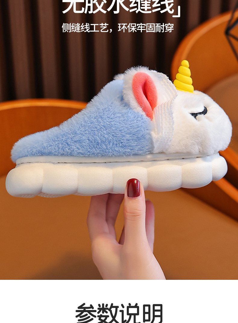独角兽儿童棉拖鞋冬季女童加绒保暖毛毛居家中小童宝宝室内毛拖鞋