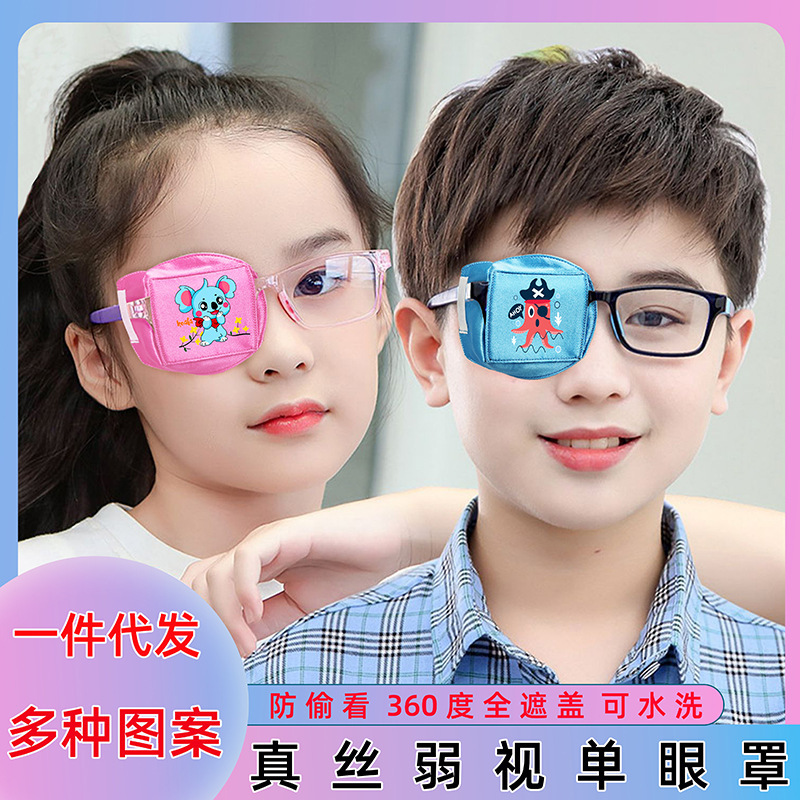 卡通儿童真丝斜视弱视眼罩 可水洗训练全遮盖矫正遮光单眼眼镜罩