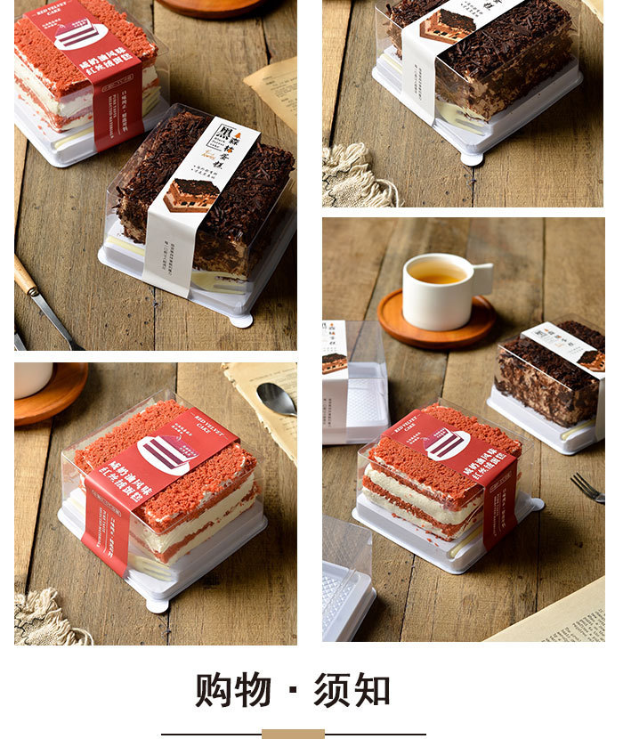 ネット赤厚切ティラミスケーキ箱透明角型西点カット赤ベルベットムース千層包装箱