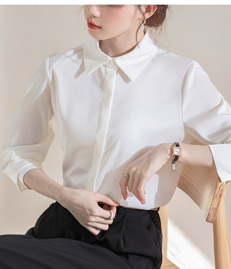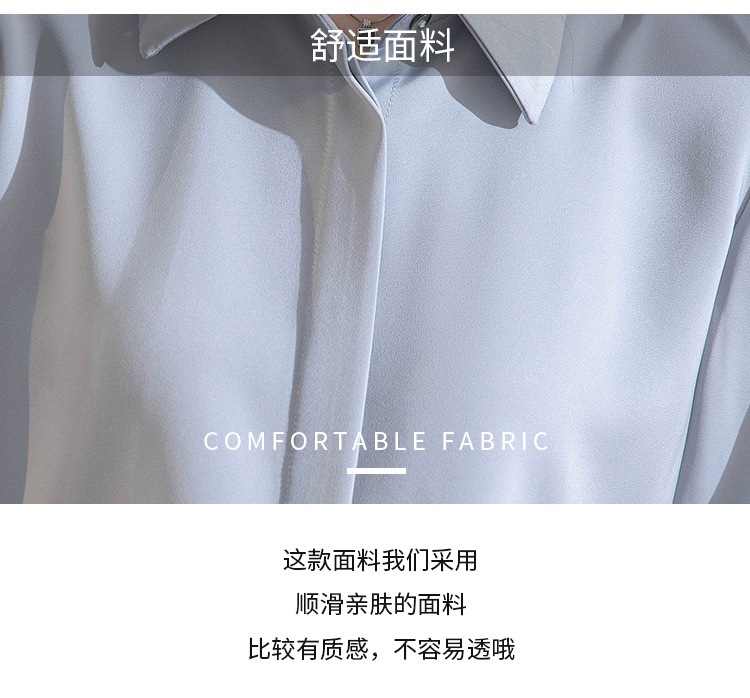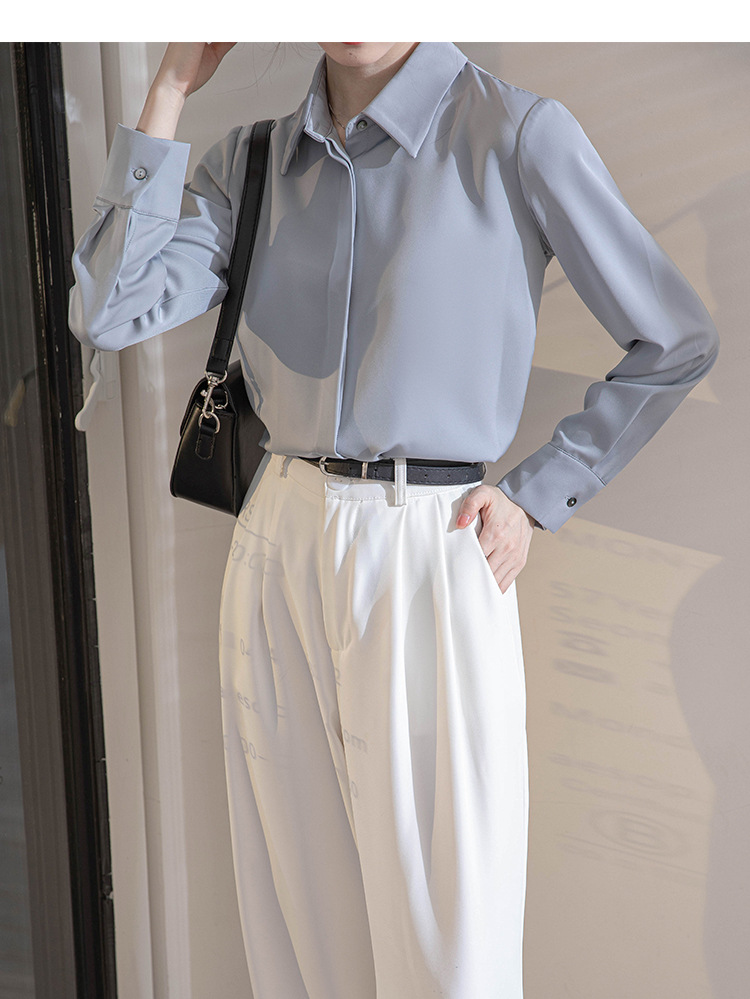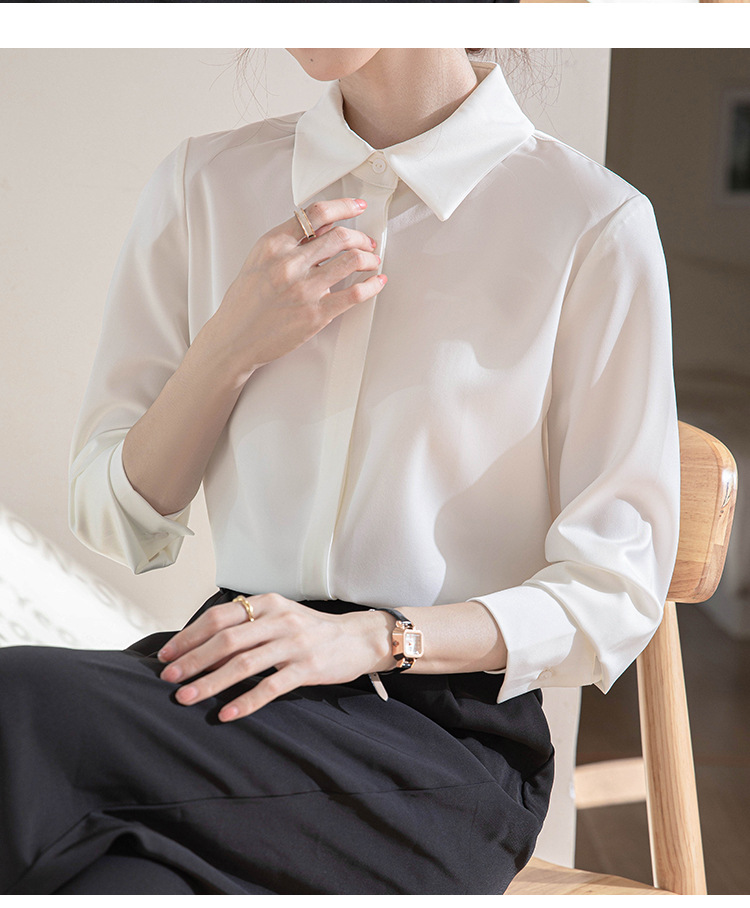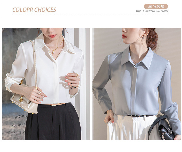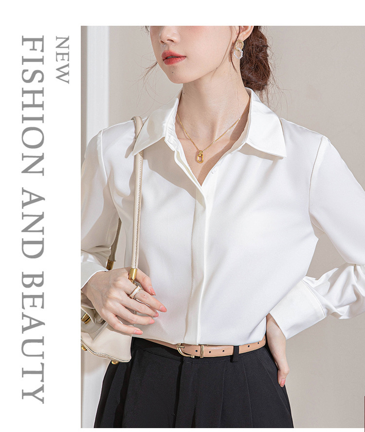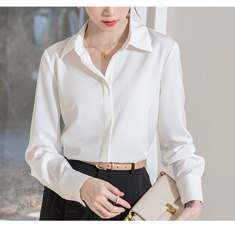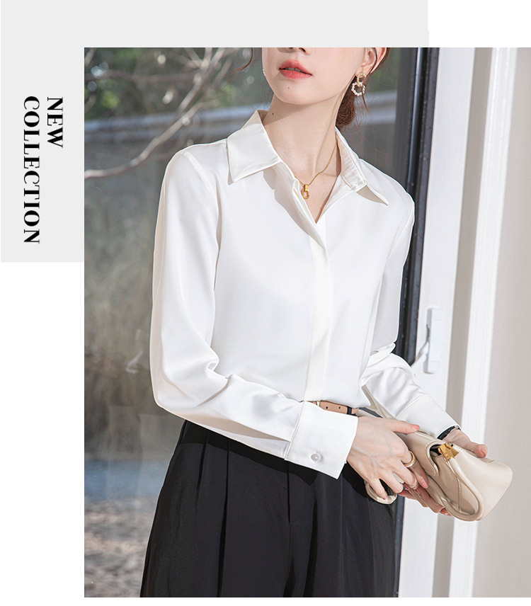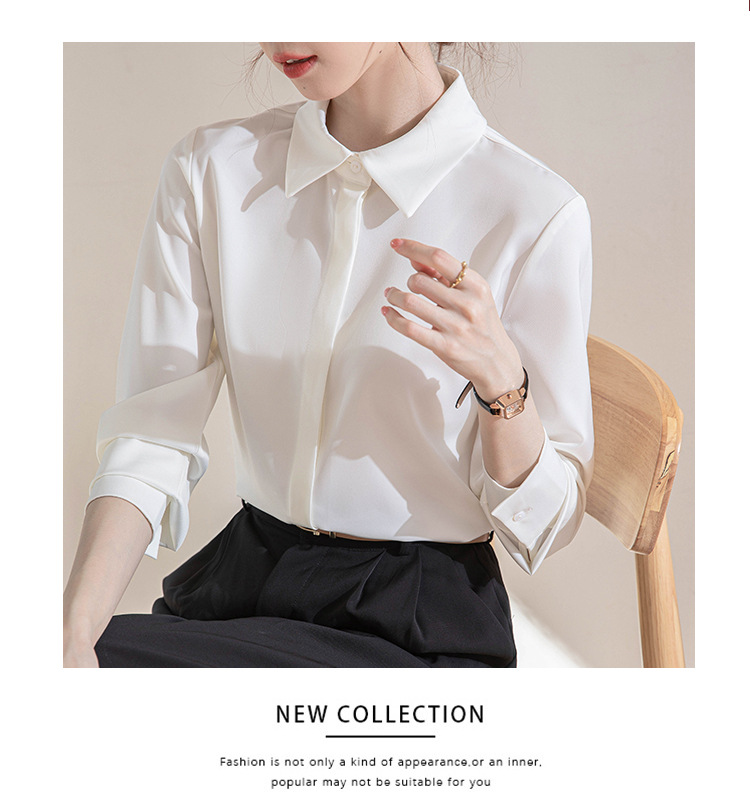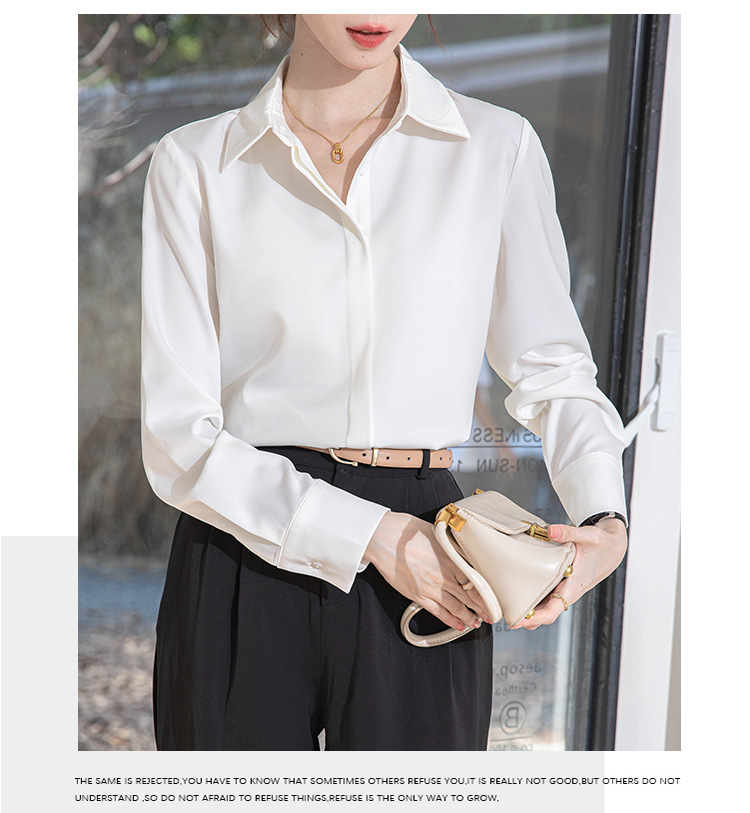 軽やかな高級感のあるサテン生地の白いシャツ、青いシャツ、女性用新デザイン、通勤、オフィスウェア、ノーアイロンシャツ