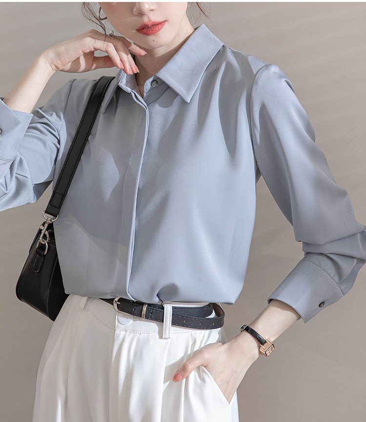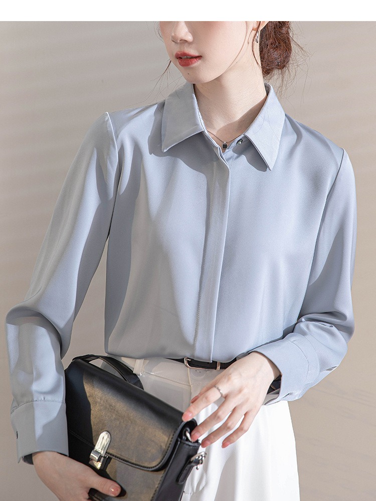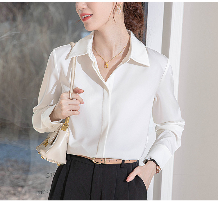 2025年秋新作 シンプルで上品な通勤用オフィスシャツ レディース シルクのような高級感のある都会風長袖シャツ