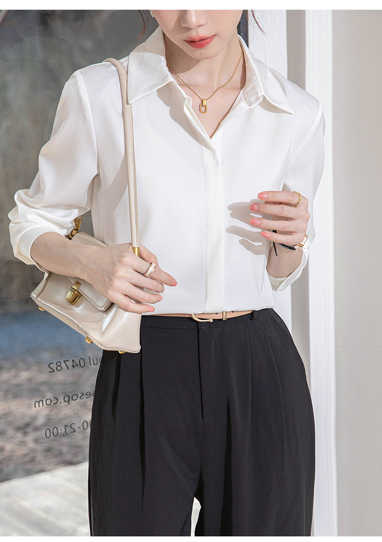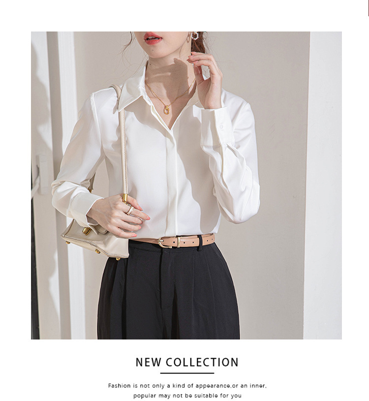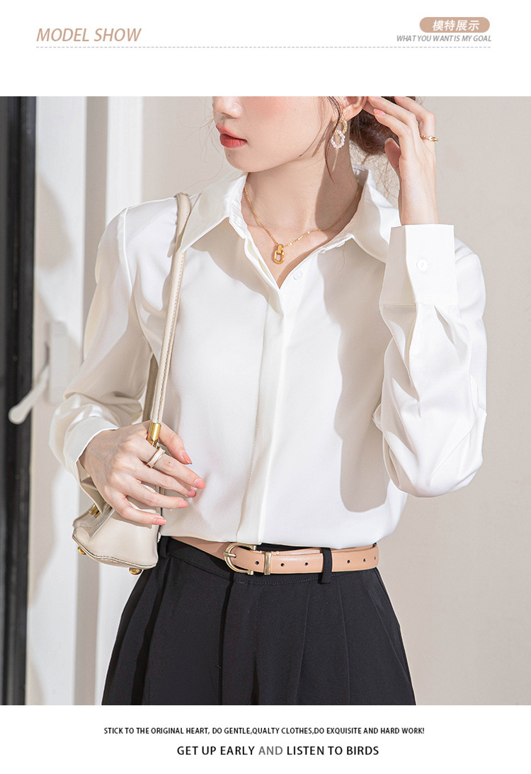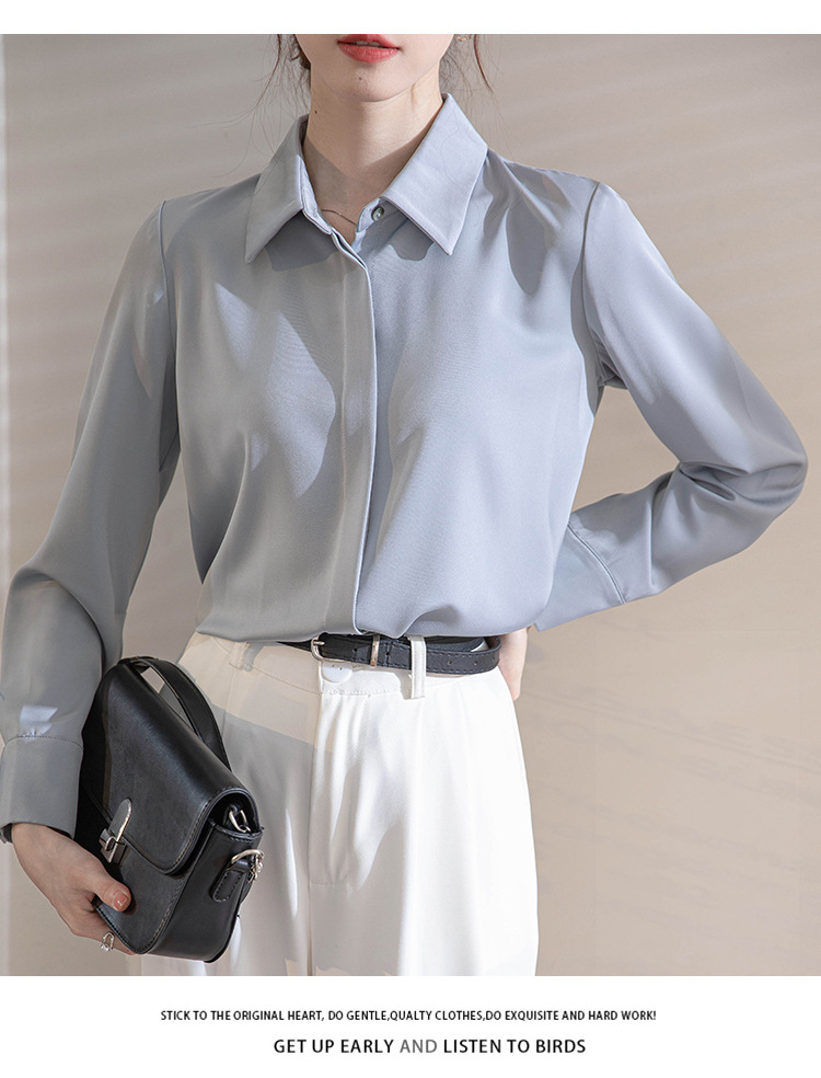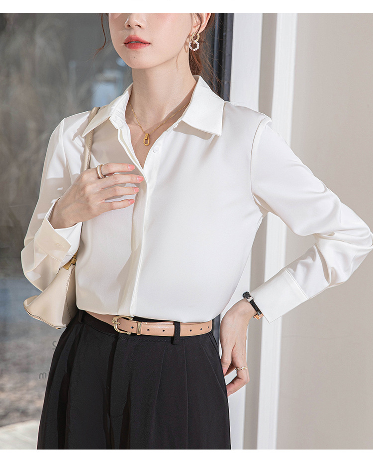 在庫ありサテンシャツ女性用2025春秋新作無地プロフェッショナルシャツ韓国風ルーズレディースシャツトップストレンディ