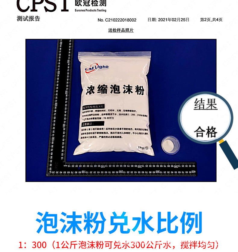 仕様 白色高濃縮泡液500ml (水割り1:660),カラー高濃縮泡液500ml (水割り1:660)(赤黄青緑紫オプション),白い泡の粉1kg (水割り1:330),カラーフォームパウダー1kg (水割り1:330)(赤黄青緑紫オプション)