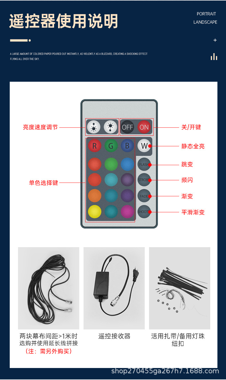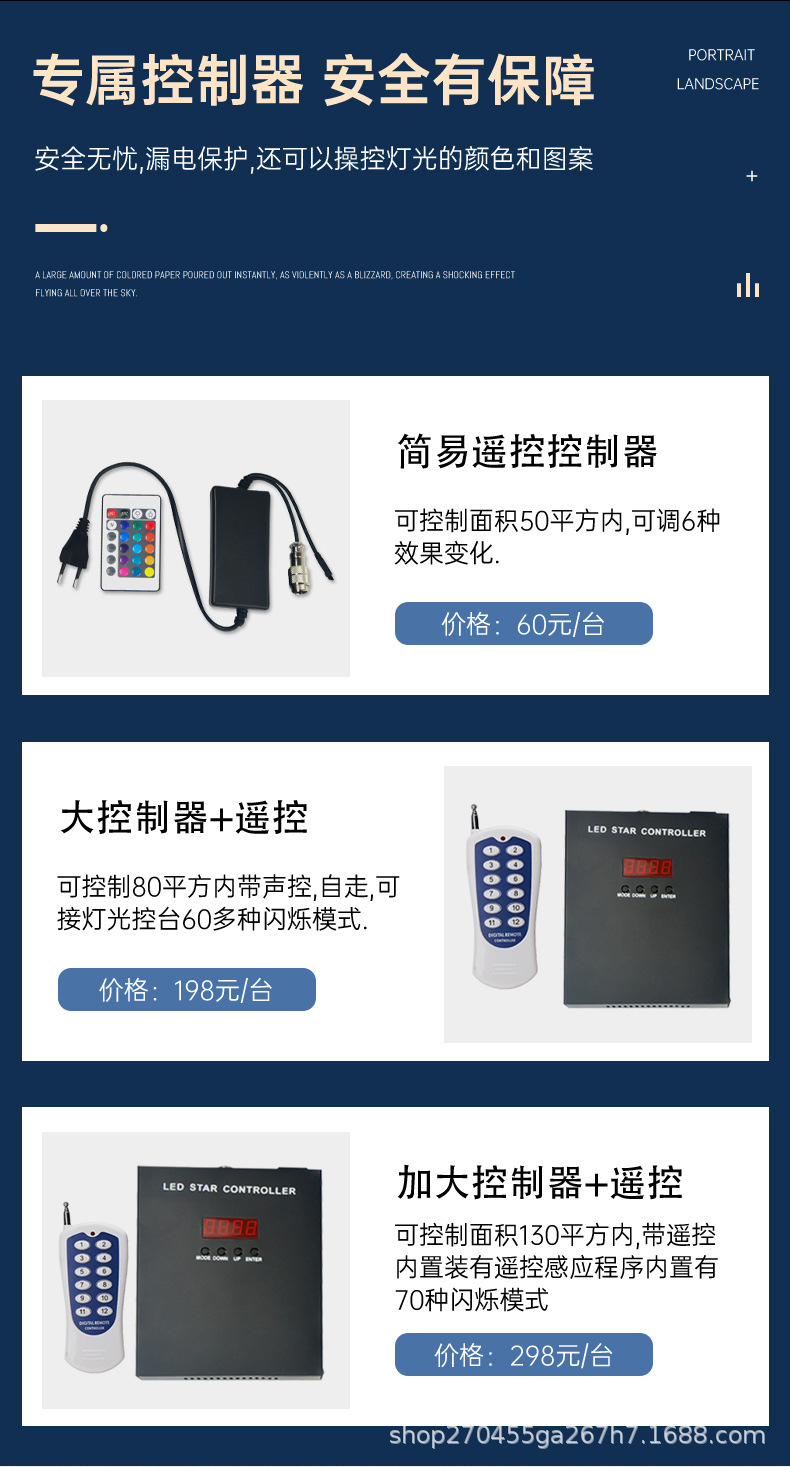 光源パワー 通常難燃 * 四線並列 * 輸入電球,B級難燃 * 四線並列 * 輸入電球,【三合一項】通常難燃 * 四線並列 * 三色輸入電球,【三合一増厚金】b級難燃 * 四線並列 * 三色輸入電球,24キー簡易コントローラ + リモコン,大コントローラ (dmx512) + リモコン,コントローラ (dmx512) + リモコン,小さな月 (直径20cm),ビッグムーン (直径30cm),小さな星(直径20cm),大きな星(直径25cm),小さな流れ星 (50cm),大きな流れ星 (100cm),5メートル信号線-延長線,10メートル信号線-延長線