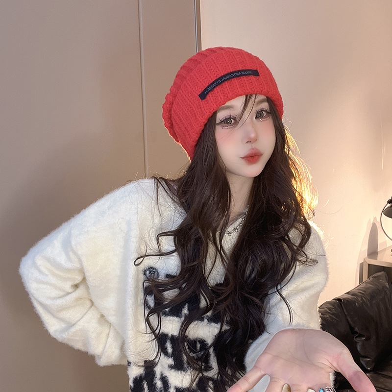 ネットの赤い帽子の女性のファッションの百合の保温のニットの帽子の韓国版の冬の防寒の冷たい帽子の大きい頭の周りの毛糸の帽子の女性