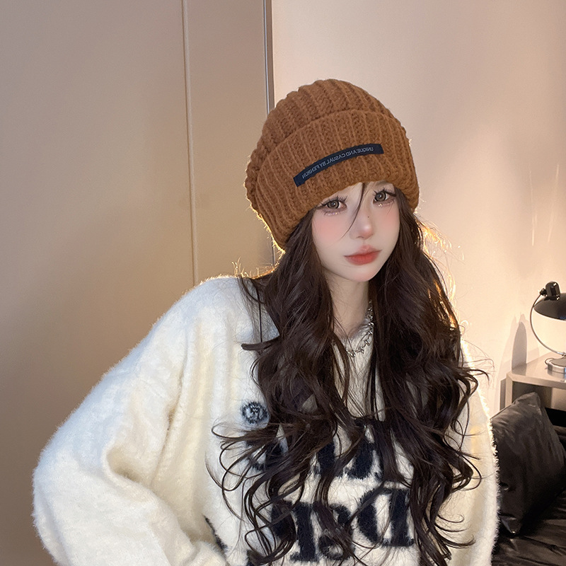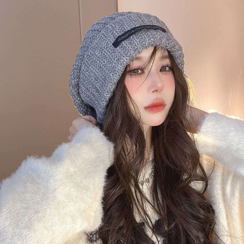 帽子の女性の秋冬の新型の山の帽子の大きい頭の周りの毛糸の帽子は顔の小さい保温のニットの帽子の学生の耳の冷たい帽子を保護します。