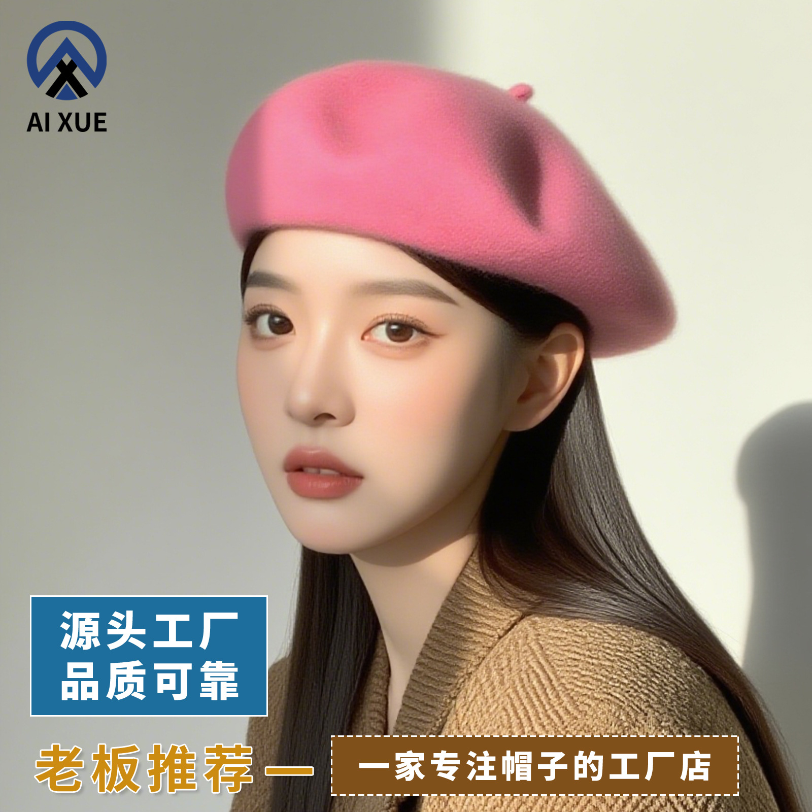 轻奢贝雷帽女2025秋冬新款韩系毛呢纯色百搭显脸小字母蓓蕾八角帽