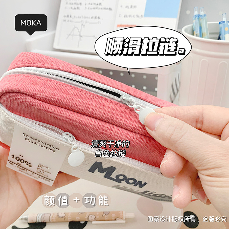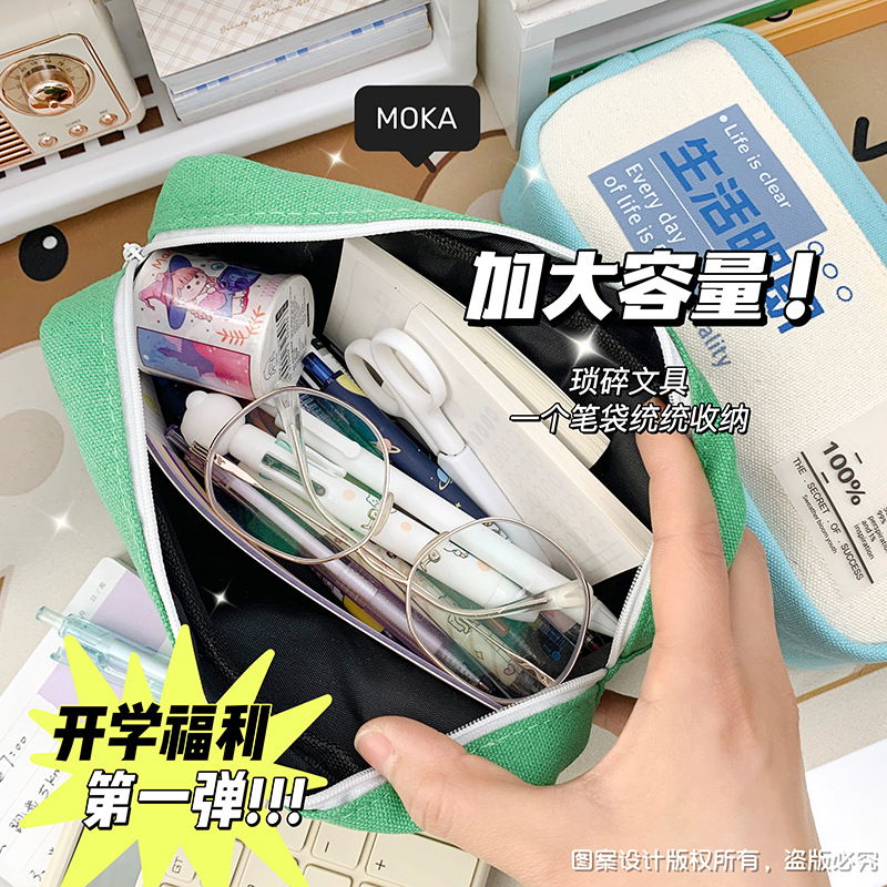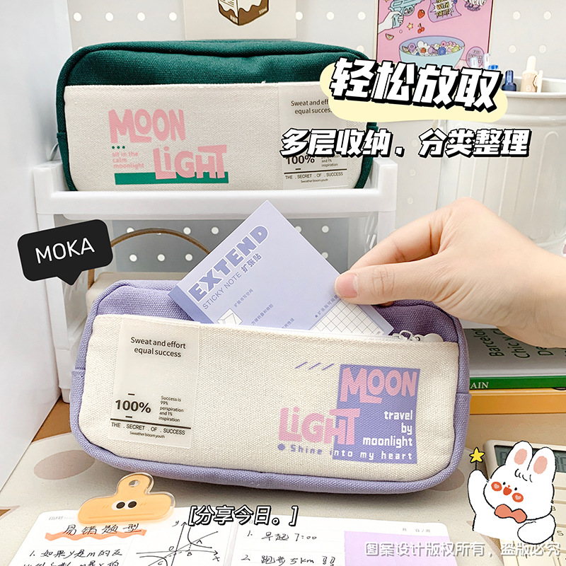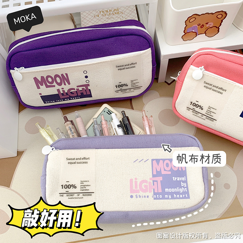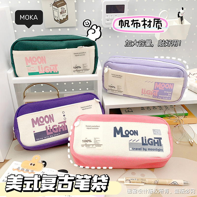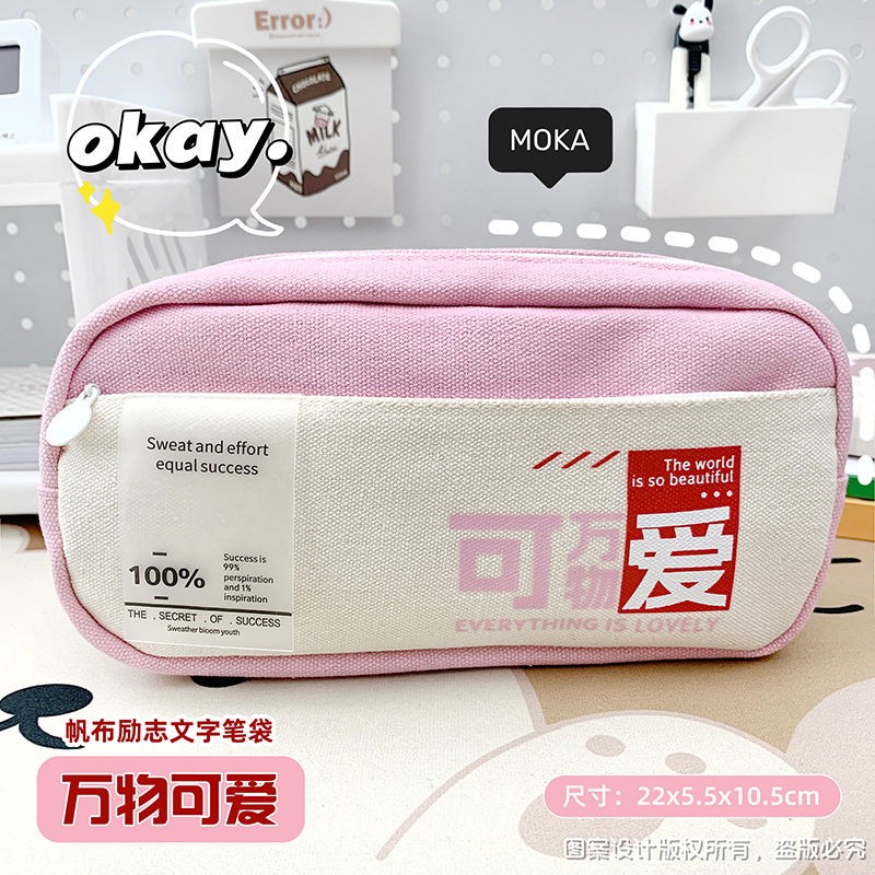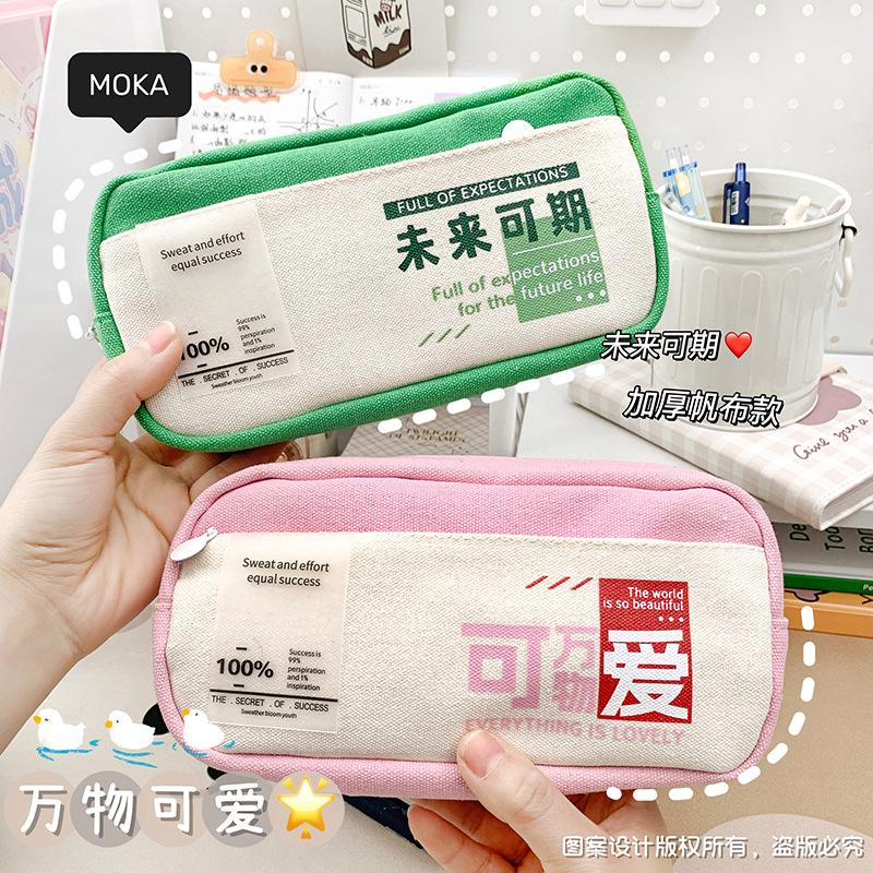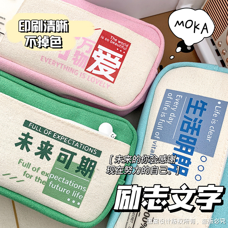 レトロなキャンバスペンケース、感動的な言葉入り、小学生向け、高見え、超大容量、多層ペンケース、卸売