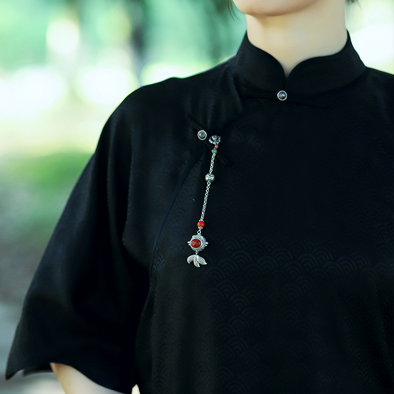 オリジナル中国風s925純銀チャイナドレス圧襟ストラップ流蘇漢服ブローチ金玉満堂ブローチ