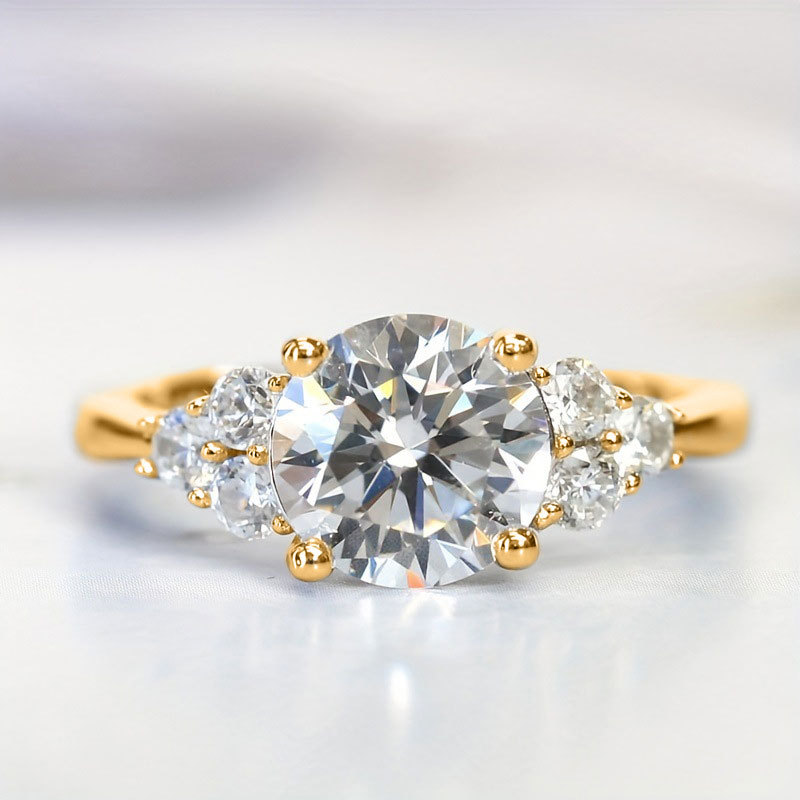 古典的な六爪はジルコンの2カラットをはめ込んでダイヤモンドの指輪をまねます。