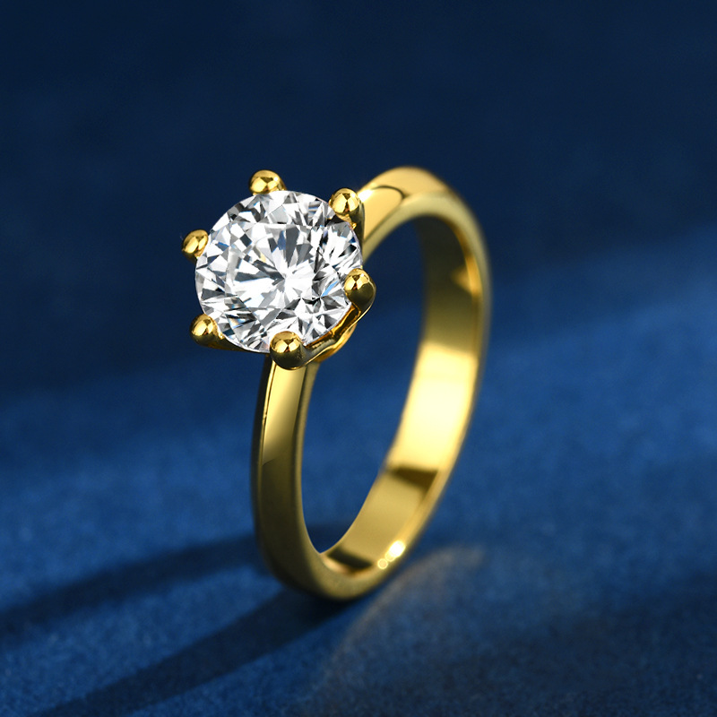 指輪女1カラット通霊六爪戒子シンプル百合気質ファッション大気生放送起爆メーカー直販