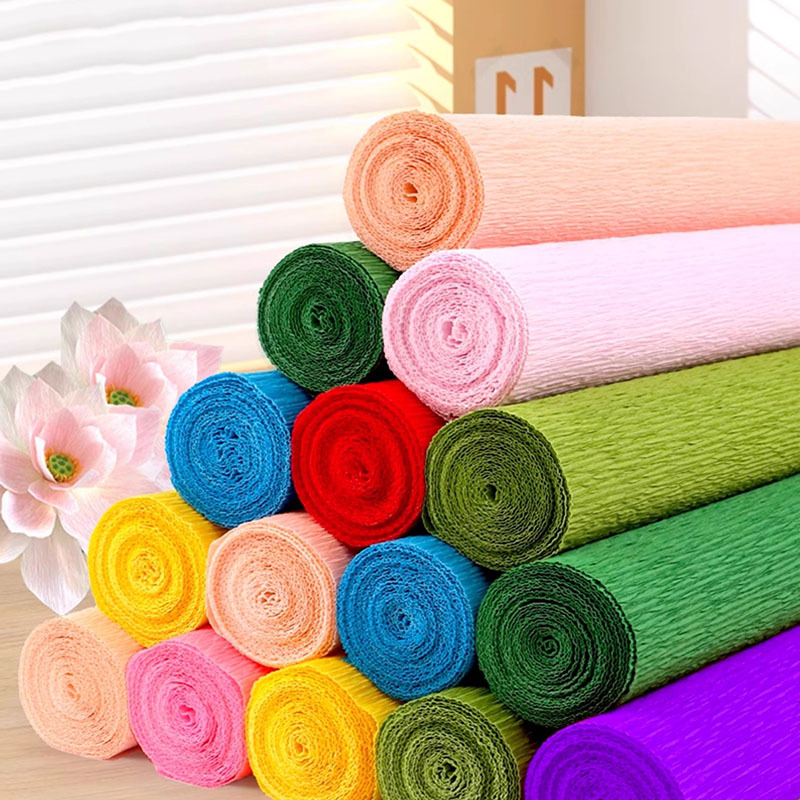 工場卸売 カラフルなクレープ紙 花包装用紙 DIYフラワーアート作成材料 ロール状の折りたたみ式伸縮紙