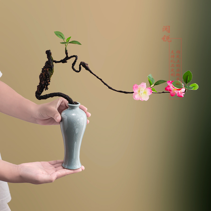 岳瑞 哥窯陶器 卓上花器 ホテル レストラン ドライフラワー 茶室 禅意装飾 水耕栽培花瓶