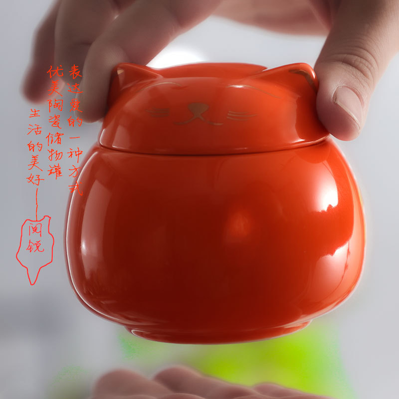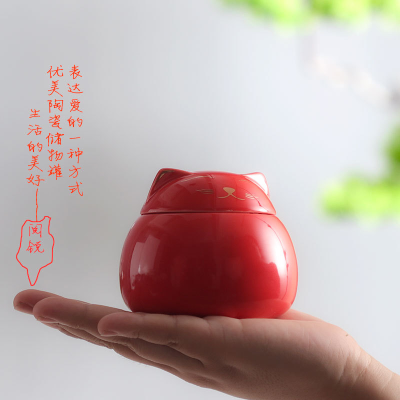 招き猫セラミック茶缶防湿密封保存缶和風小さな茶倉庫ドライフルーツウェディングキャンディ缶ロゴ印刷可能