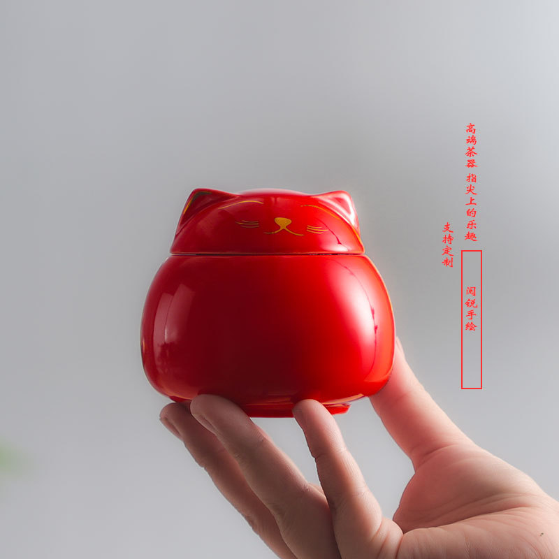 招き猫茶葉缶貯蔵缶密封缶ポータブル旅行家庭用オフィスセラミック茶倉防湿卸売り