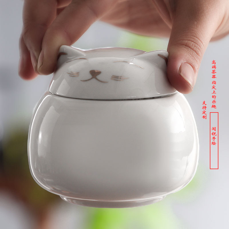 珍福器 猫咪茶叶罐花猫陶瓷密封罐香粉瓶迷你小号防潮罐茶仓干果