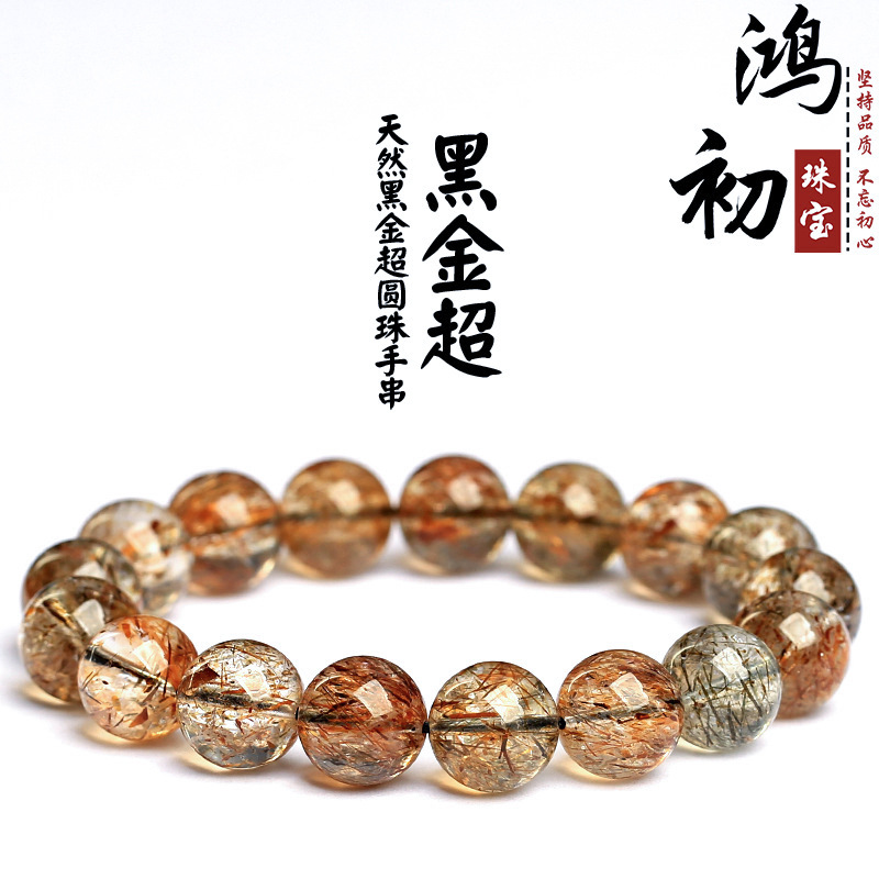 ホンチュクリスタル 天然ブラックゴールドスーパーセブンブレスレット ブラックチタンクリスタルスーパーセブンブレスレット ラウンドビーズブレスレット 卸売
