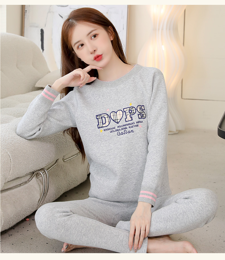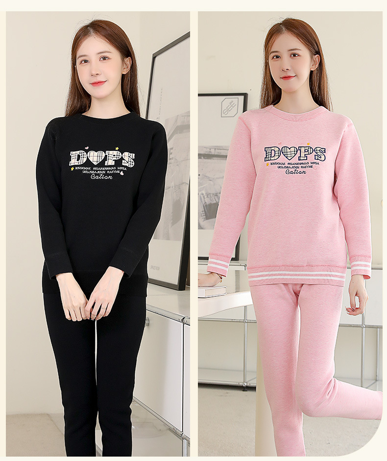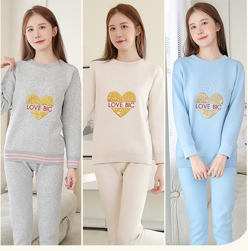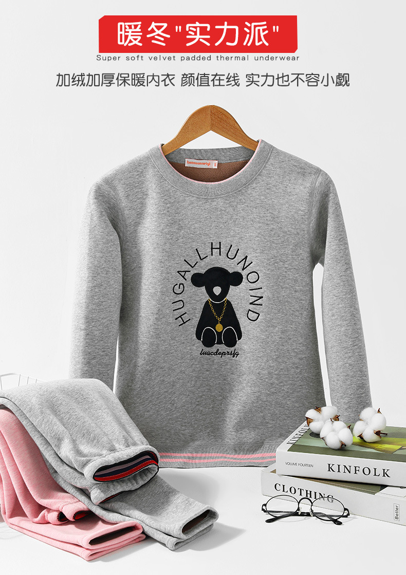 少女の保温下着の厚いベルベットの底のシャツの学生の綿のセーターの秋のズボンの純綿の女性の保温スーツ
