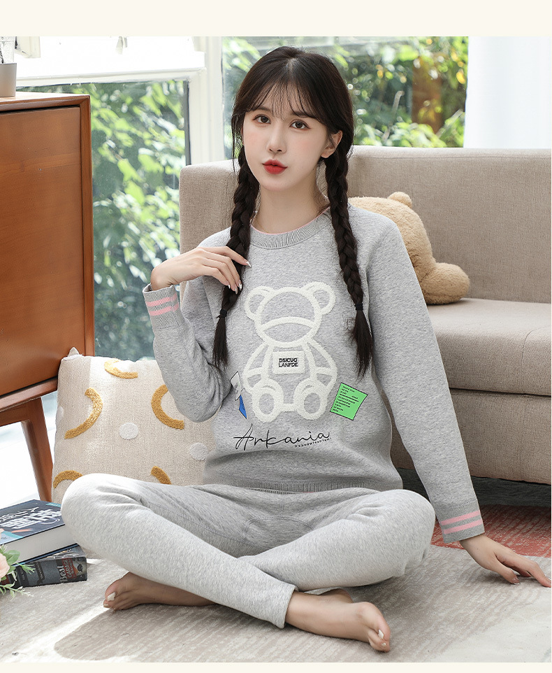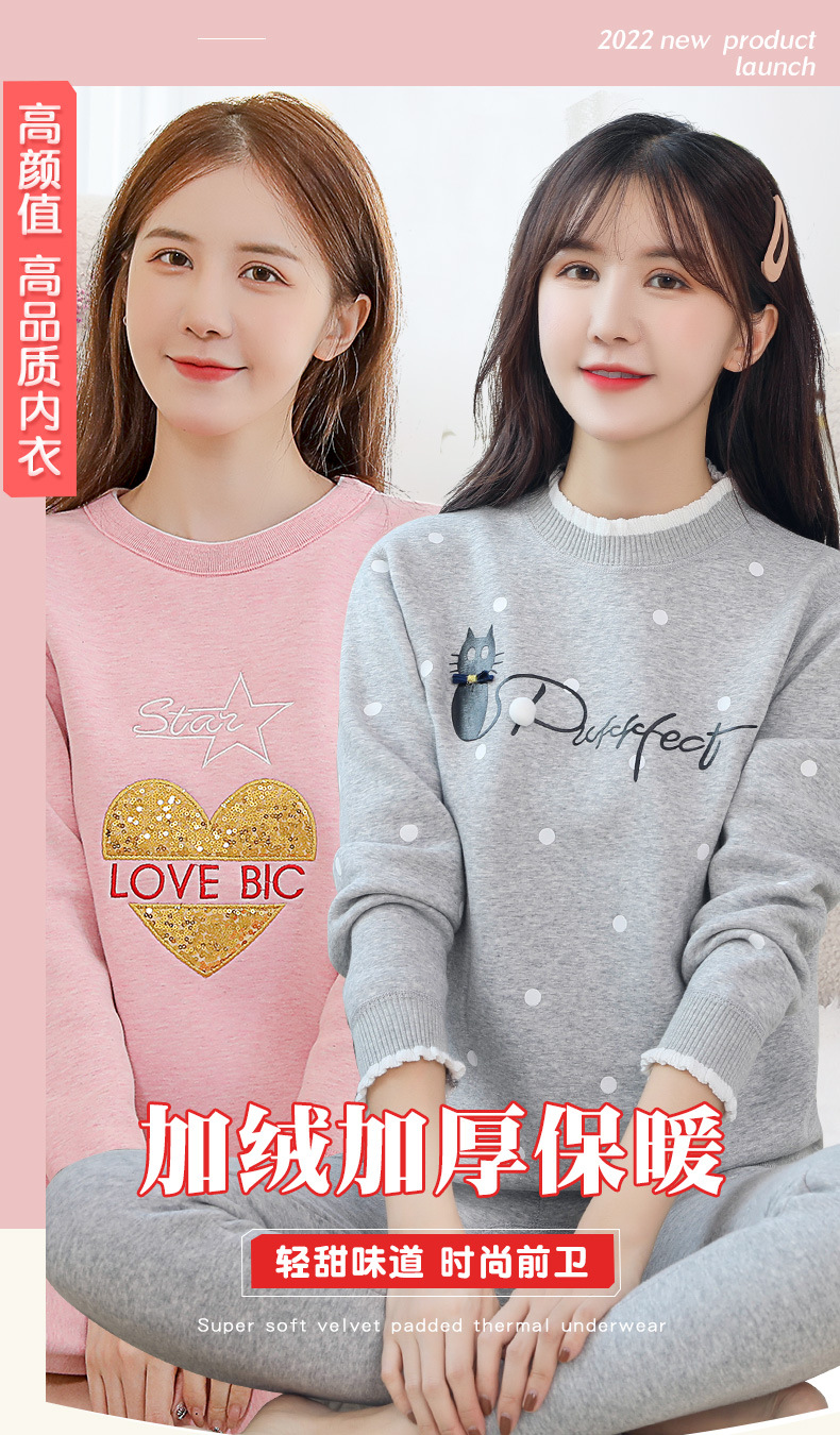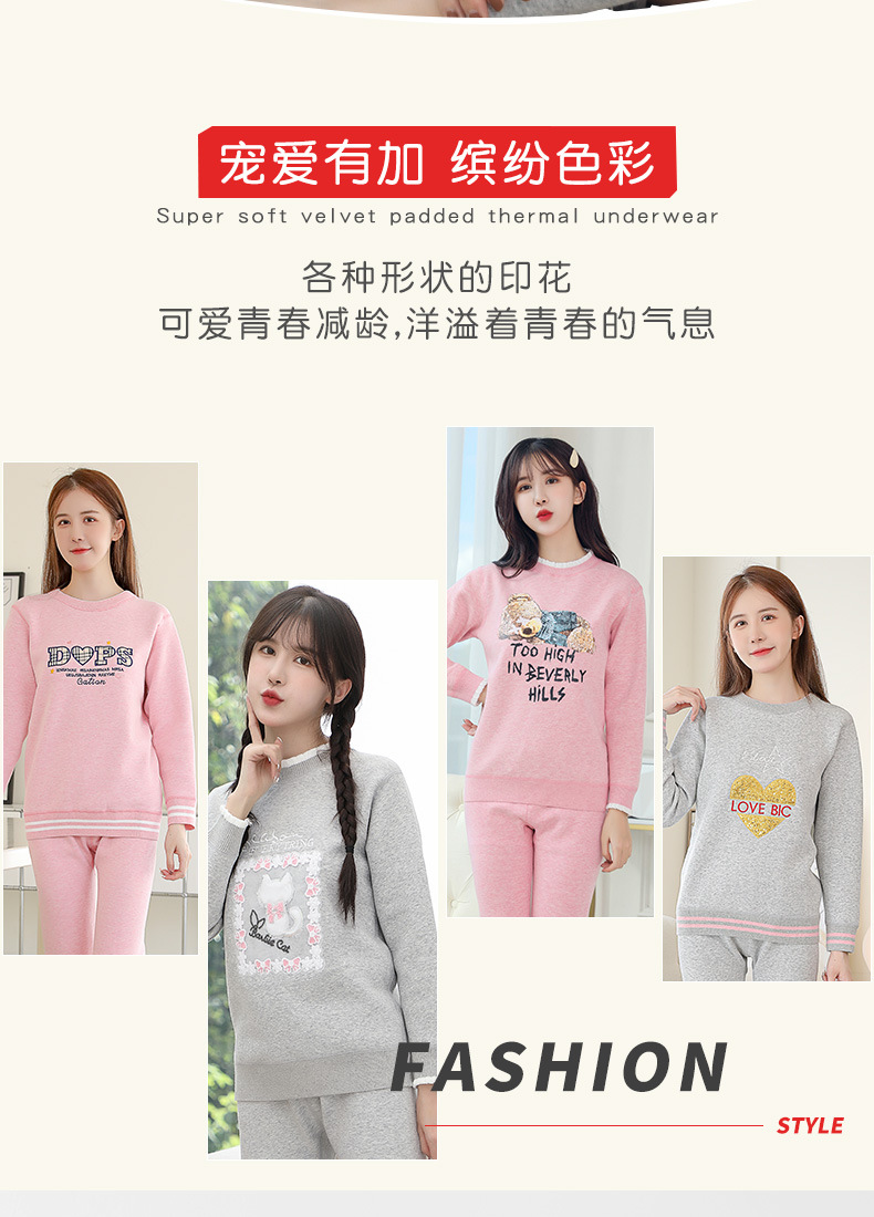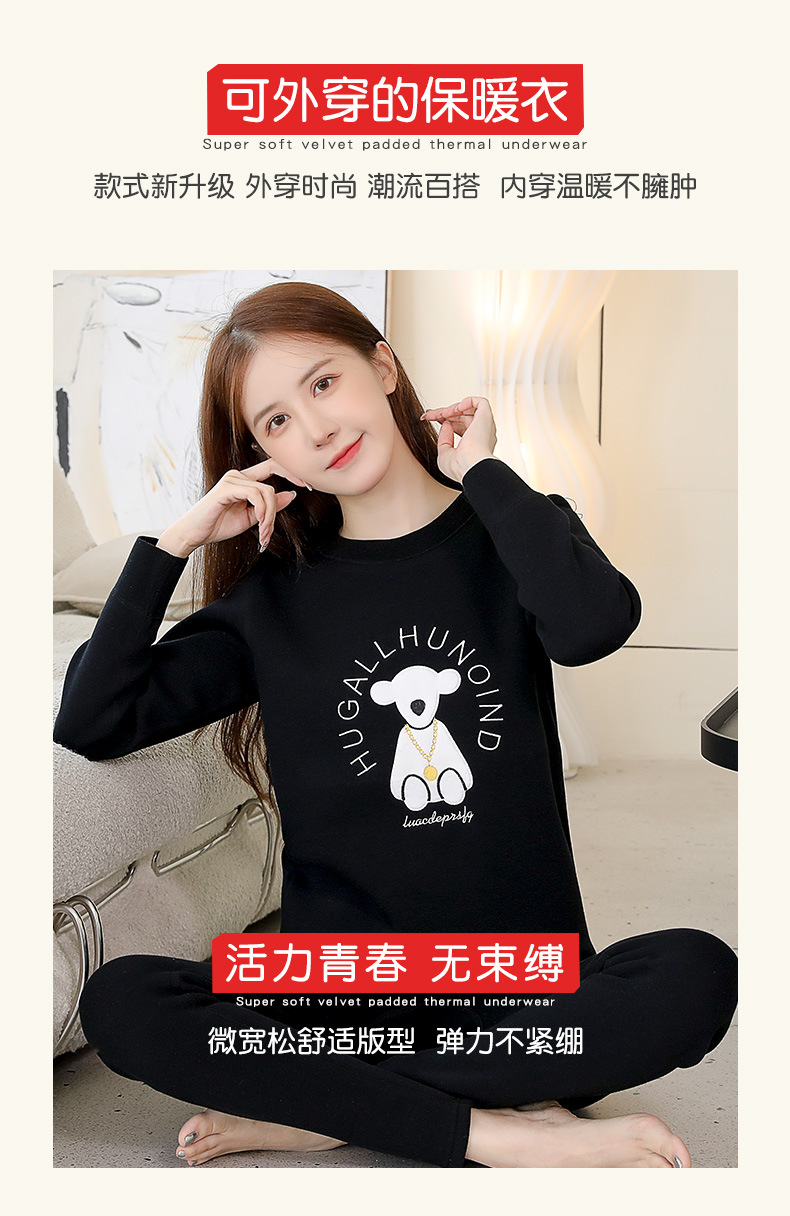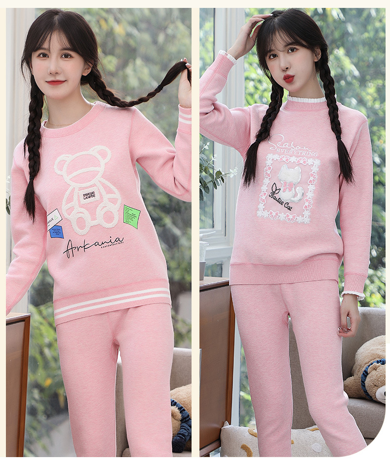 保温下着の女性セットにベルベットをつけて、青少年の純綿少女のかわいい中学生の秋の服の秋のズボンの女性の秋冬を厚くします。